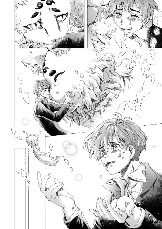 | “The part when the boy hugs the black Yokai cat. This part shows that he has no one else to count on except the black Yokai cat who tries to cheer him up.” | |