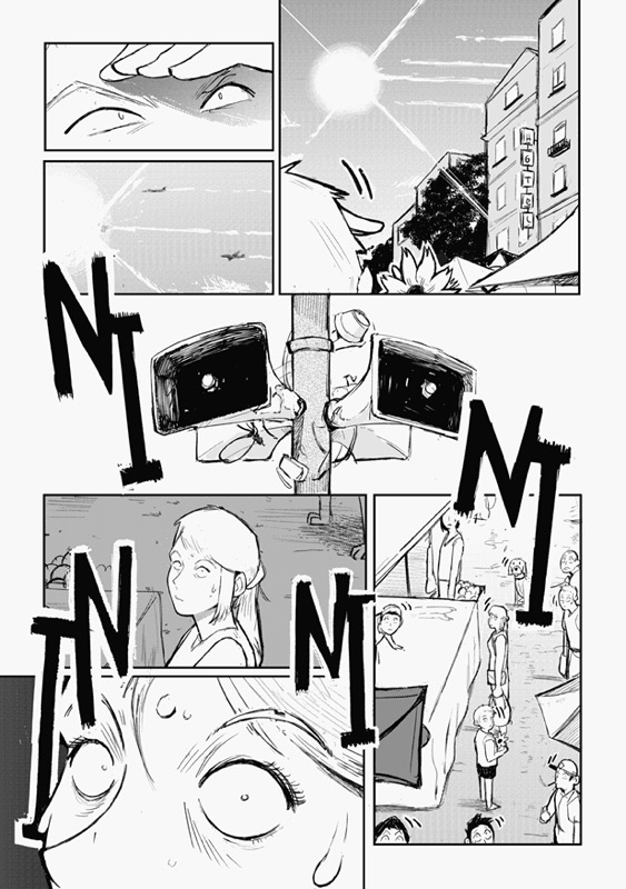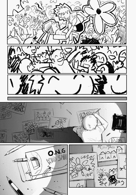 “The first image that came to my mind was that of a child looking at a drawing against the light, I think it is something that any cartoonist can identify with! Designing a flower-shaped robot was fun too.”