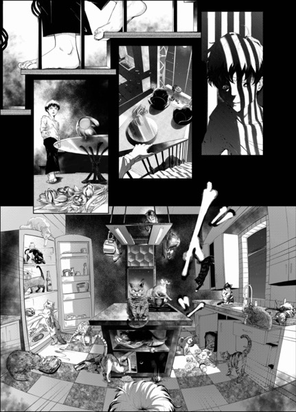 “I loved drawing the title page. I had the image in my mind for a long time, so it was great feeling bringing it to fruition. I also enjoyed the double page spread as well. I draw a cute slice-of-series, so it was fun to create such a dramatic scene.”