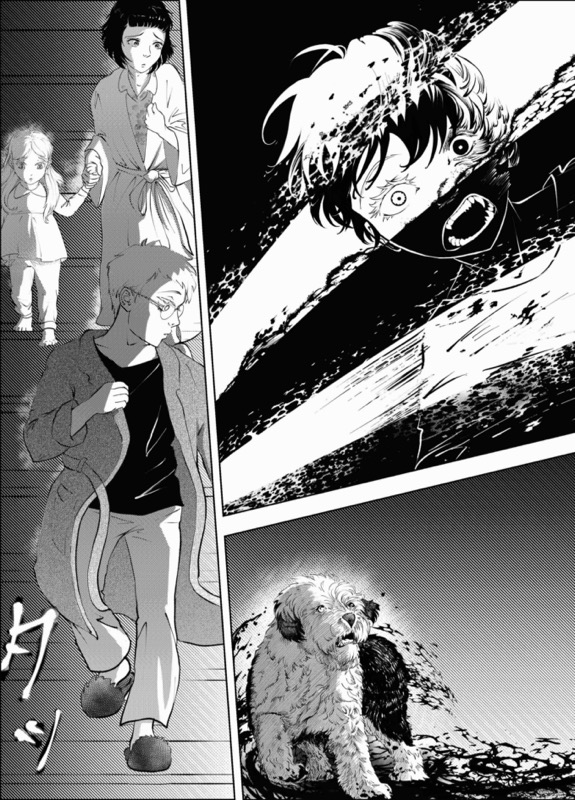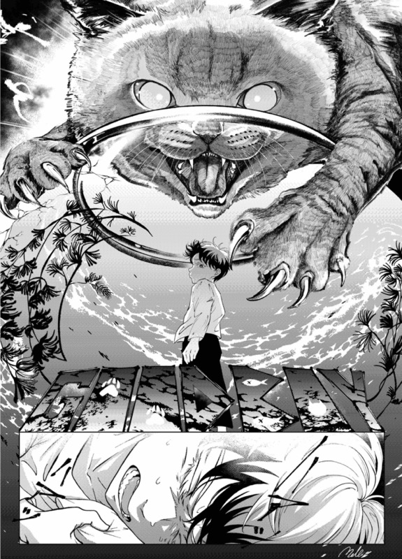 | “I loved drawing the title page. I had the image in my mind for a long time, so it was great feeling bringing it to fruition. I also enjoyed the double page spread as well. I draw a cute slice-of-series, so it was fun to create such a dramatic scene.” | |