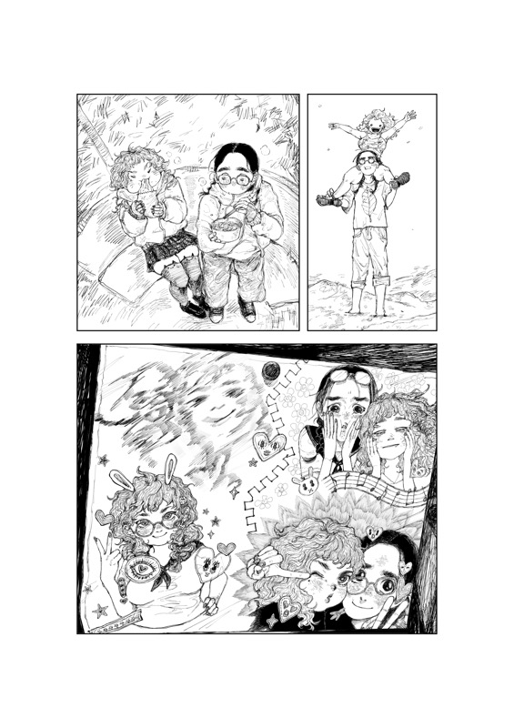 | “I really enjoy drawing images of the two characters having fun together. During the painting process, I recalled happy time spent with my friends in high school.” | |