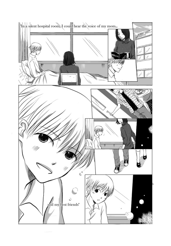 | “I want to make a silent manga with my own style. This time I chose a sad story for theme 'The Finest Smile'. I try a different drawing style with the hope that readers could connect with the incidences in '3 Smiles'. There is still room for improvement but I hope that readers could enjoy the story of this silent manga. Thank you very much!” | |