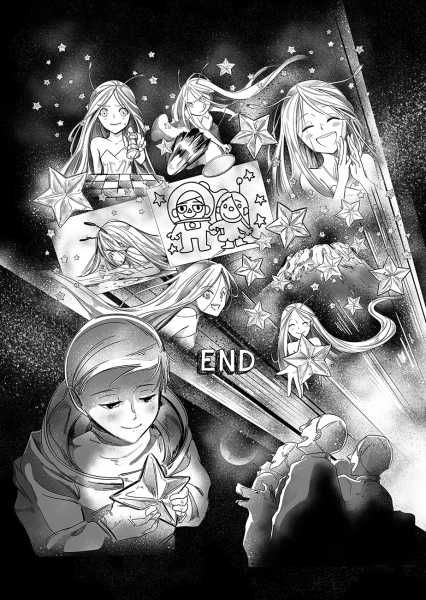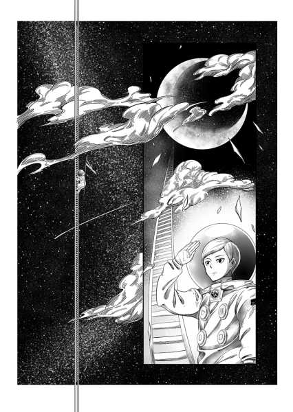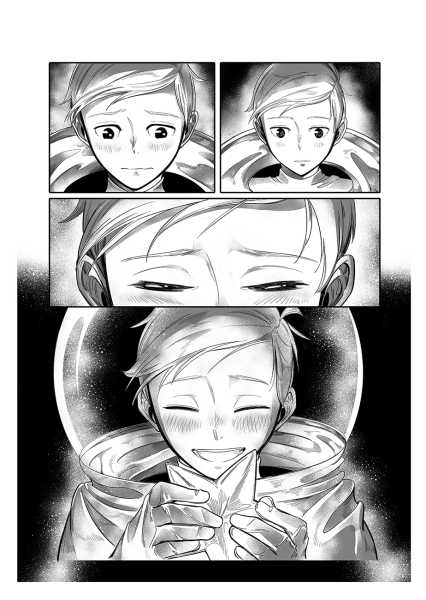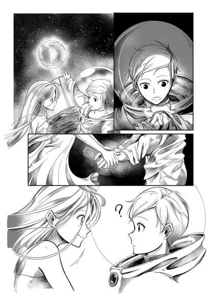 | “Human long forgotten how to smile or they never know how. Human sent out the astronaut to concur the planet above, astronaut then met the alien who has a expression he've never seen before. Alien welcomes him, offers everything she have, until the astronaut has to leave, she gave him a goodbye gift, and hoping he had a good time. Even they don't have the same language nor they can even hear them selfs in space, the astronaut felt worm and joyful for such friendliness that gives him his first smile ever. He can see she has nothing, other then her beautiful smile and this empty planet, the least he can do is to not take away her home. Astronaut's departure also made alien understand what lonely felt like, but what the know didn't know is, he spread this joy to everyone on earth, and he'll never forget her, and since he's a astronaut, he'll visit again for sure. Fun fact: Hair of the alien represent length she've been living on the planet alone.” | |