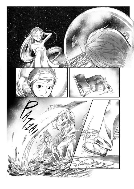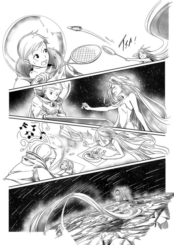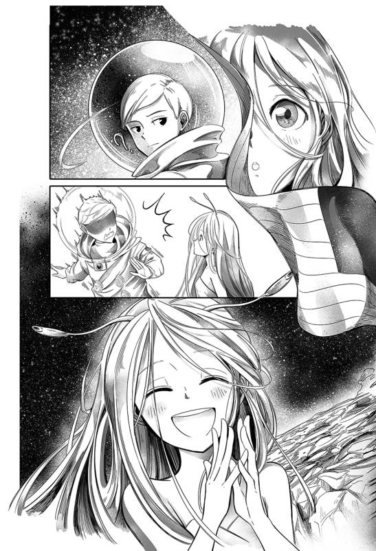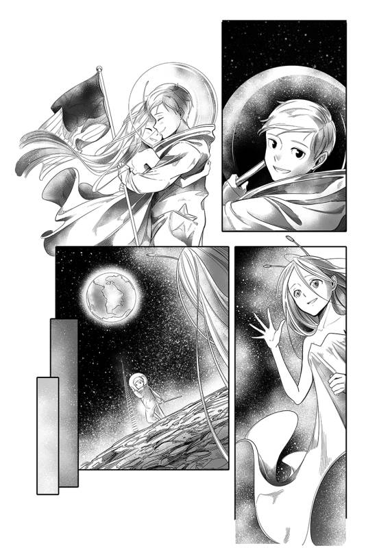 | “Human long forgotten how to smile or they never know how. Human sent out the astronaut to concur the planet above, astronaut then met the alien who has a expression he've never seen before. Alien welcomes him, offers everything she have, until the astronaut has to leave, she gave him a goodbye gift, and hoping he had a good time. Even they don't have the same language nor they can even hear them selfs in space, the astronaut felt worm and joyful for such friendliness that gives him his first smile ever. He can see she has nothing, other then her beautiful smile and this empty planet, the least he can do is to not take away her home. Astronaut's departure also made alien understand what lonely felt like, but what the know didn't know is, he spread this joy to everyone on earth, and he'll never forget her, and since he's a astronaut, he'll visit again for sure. Fun fact: Hair of the alien represent length she've been living on the planet alone.” | |