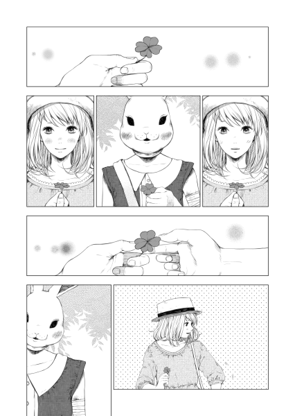“I had to redraw the rabbit mask a few times to make it less creepy. (Although it’s still a little unsettling…) The entire comic was frantically made in one and a half weeks! I wish I gave myself more time to work on this, but it was what I could manage.”