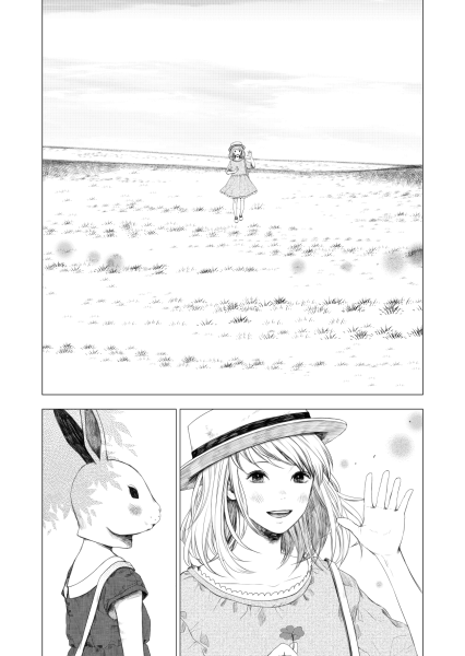 ““Forward" is about a girl’s mysterious encounter with her older self. It contrasts a curious child, who collects wishful hopes for the future, with a disenchanted rabbit, who looks back to a more peaceful past. Though their atmospheres are quite different, their smiles are one and the same. I think a fine smile is one that returns to you.”