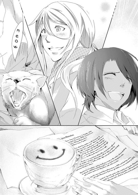 | “I am happy I have made this piece. This may not be our best, for we will keep on improving. We know how hard it is when people judge only by our behavior and expression. Also how hard it is to draw it in this Silent Manga. Oh, and I love the cat.” | |