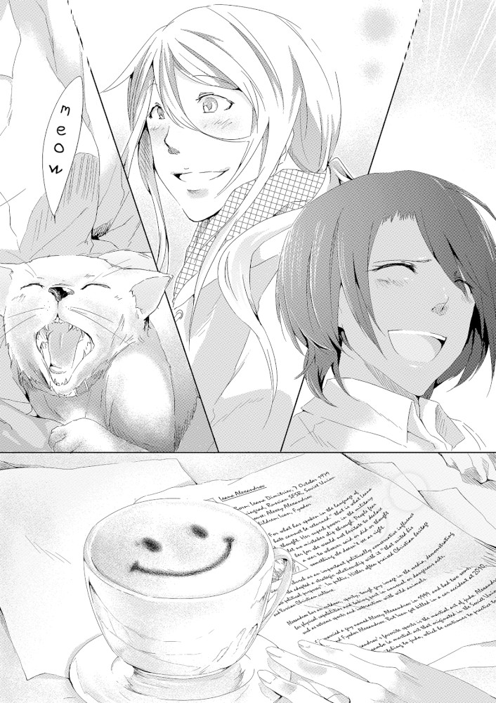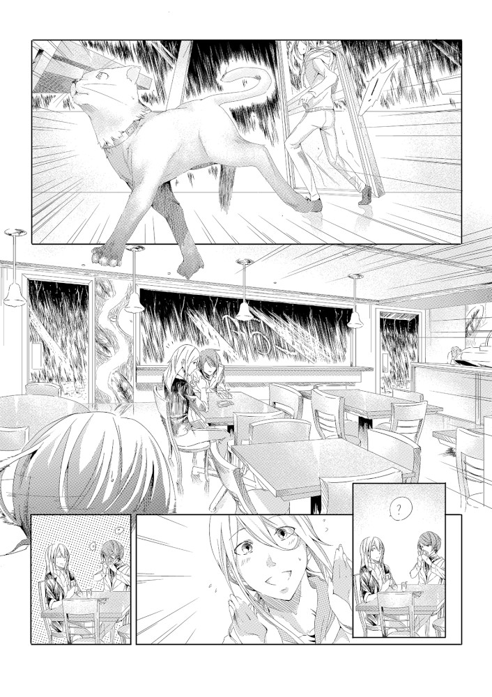 | “I am happy I have made this piece. This may not be our best, for we will keep on improving. We know how hard it is when people judge only by our behavior and expression. Also how hard it is to draw it in this Silent Manga. Oh, and I love the cat.” | |