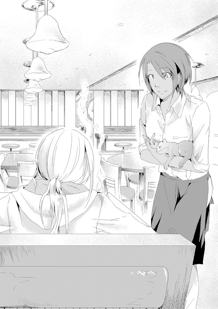 | “It is not my place to say, but the best part of the manga is seeing those sweet characters come alive. Each character has a name, has a story. Each customer in the setting has a name. We even named the cat. But for something more noticeable, the best part of the manga is when the cat runs away from the boy, and when everyone - even the coffee - smiles in the end.” | |
