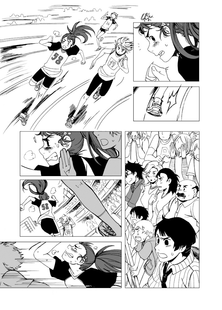 | “Just like the girl running in this manga, we have been working hard for some weeks on these pages! Even though there were some moments of nerves and stress, we have also enjoyed the process and learned quite a lot. We hope readers will enjoy this manga!” | |