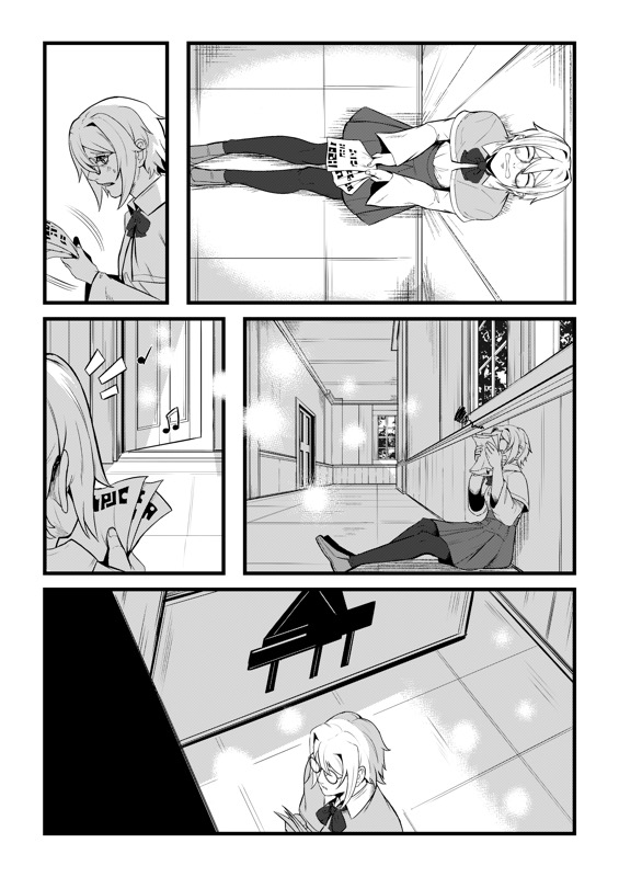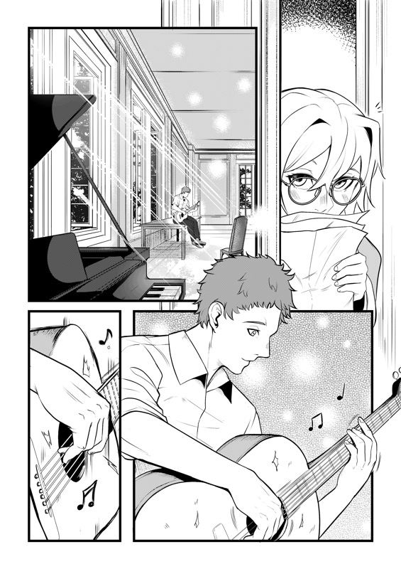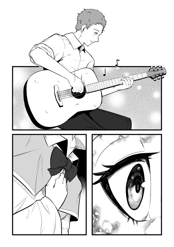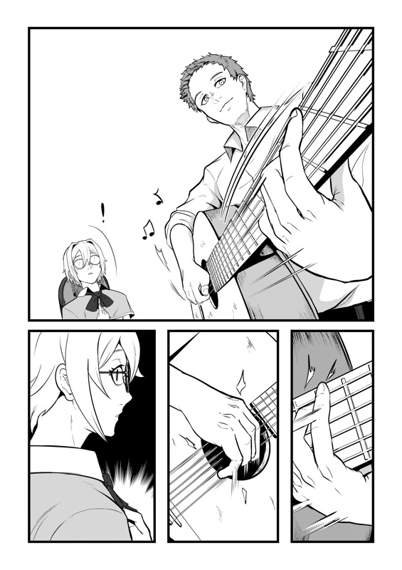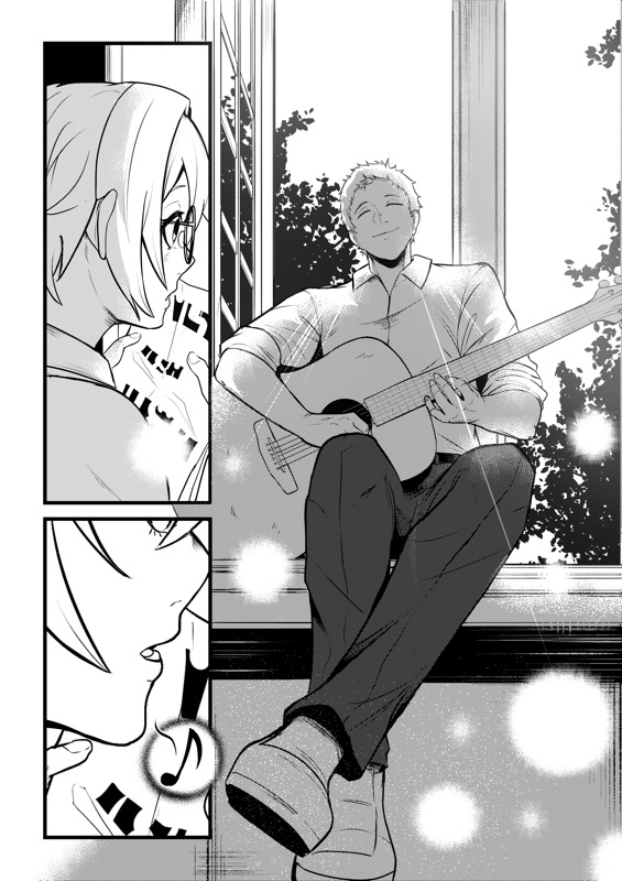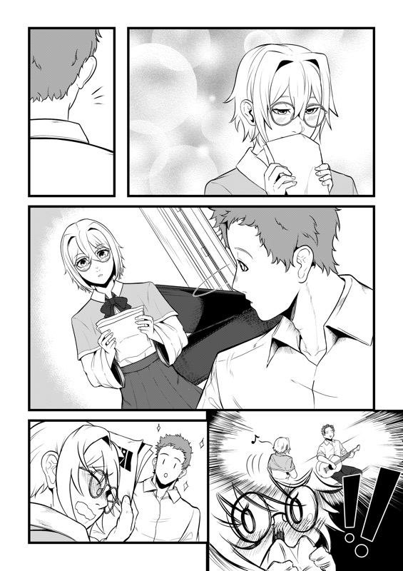 “Yama Fuji: "For me, it's gotta be the final moment in the story where the girl started singing along and I'm really glad I could pull off something like this!" Yoyuu: " I like the beginning part of the story because it was shown in a fun way for the readers that she struggles to join any club."”