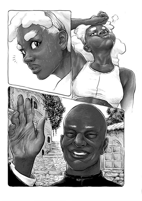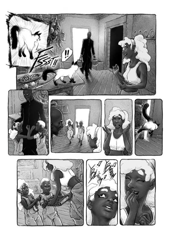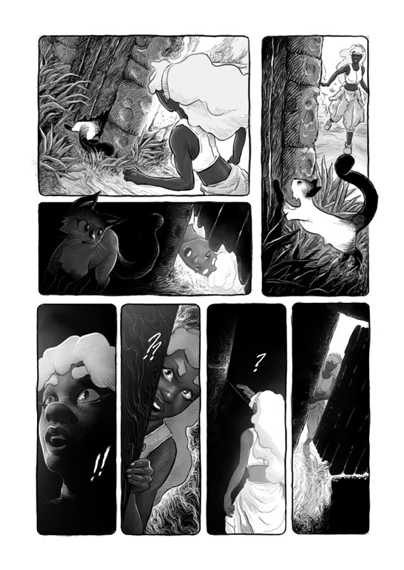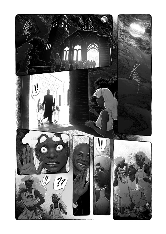“This was my first teamwork, the fantastic story was written by Matheus Buga. What I liked most about drawing were always the scenarios. The last page is the one I enjoyed working on the most, mainly because of the light and shadow effects, which is something I love doing. hehe Thanks everyone!”
