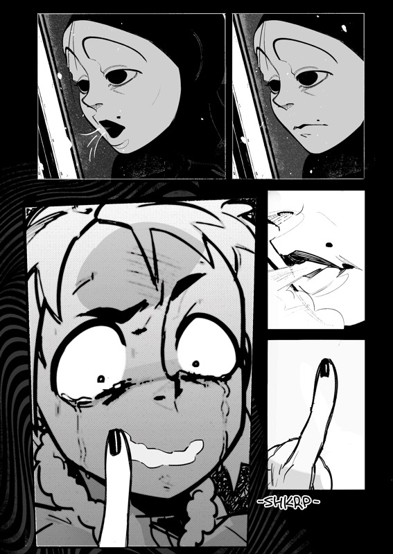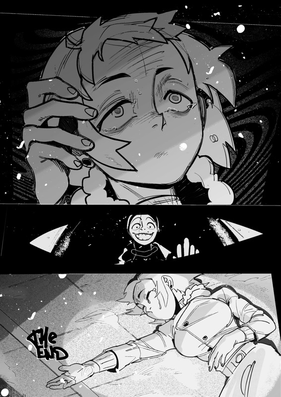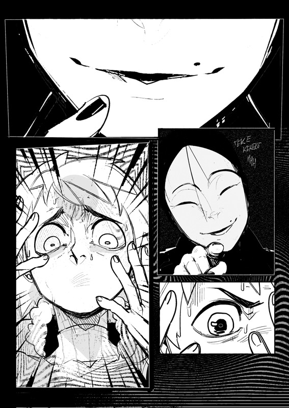 “Hi! This is my fourth attempt. Let's see how much better I've become at drawing manga. I hope you don't mind horror.”