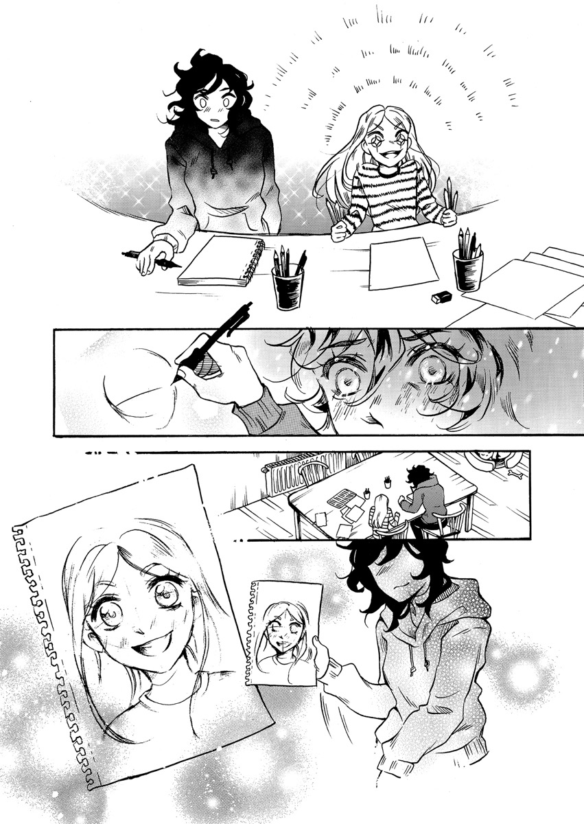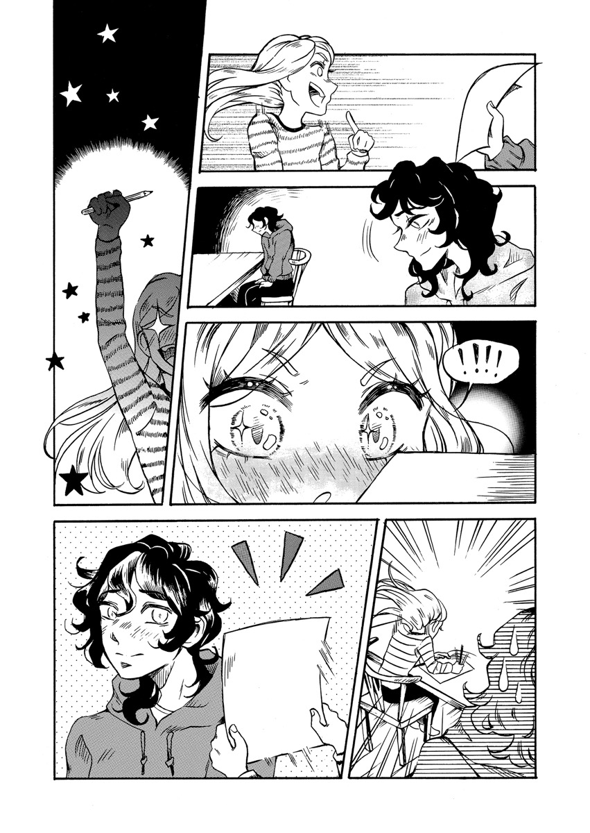 “I usually work on my comics digitally in front of a screen all day, but for SMA I try to challenge myself by always drawing it completely traditional. It was a nice break to get crafty with ink and screentones. I also got to use my new light table for the first time!”