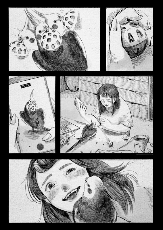 “In this comics I feeling instersted part is main character and her parrot that the interactive life just like they really alive in the world.”