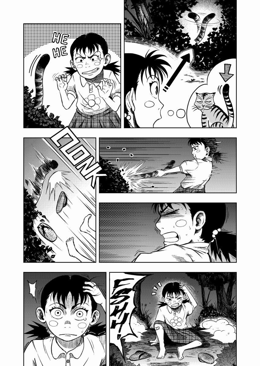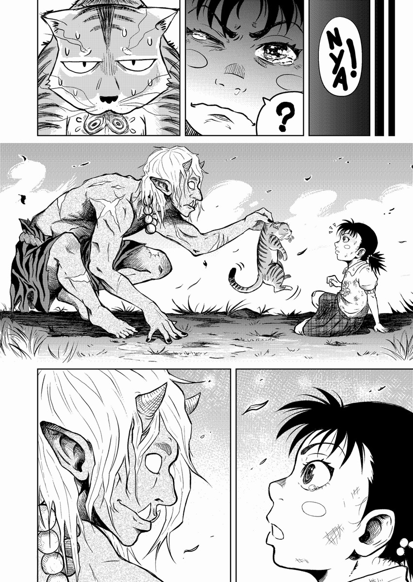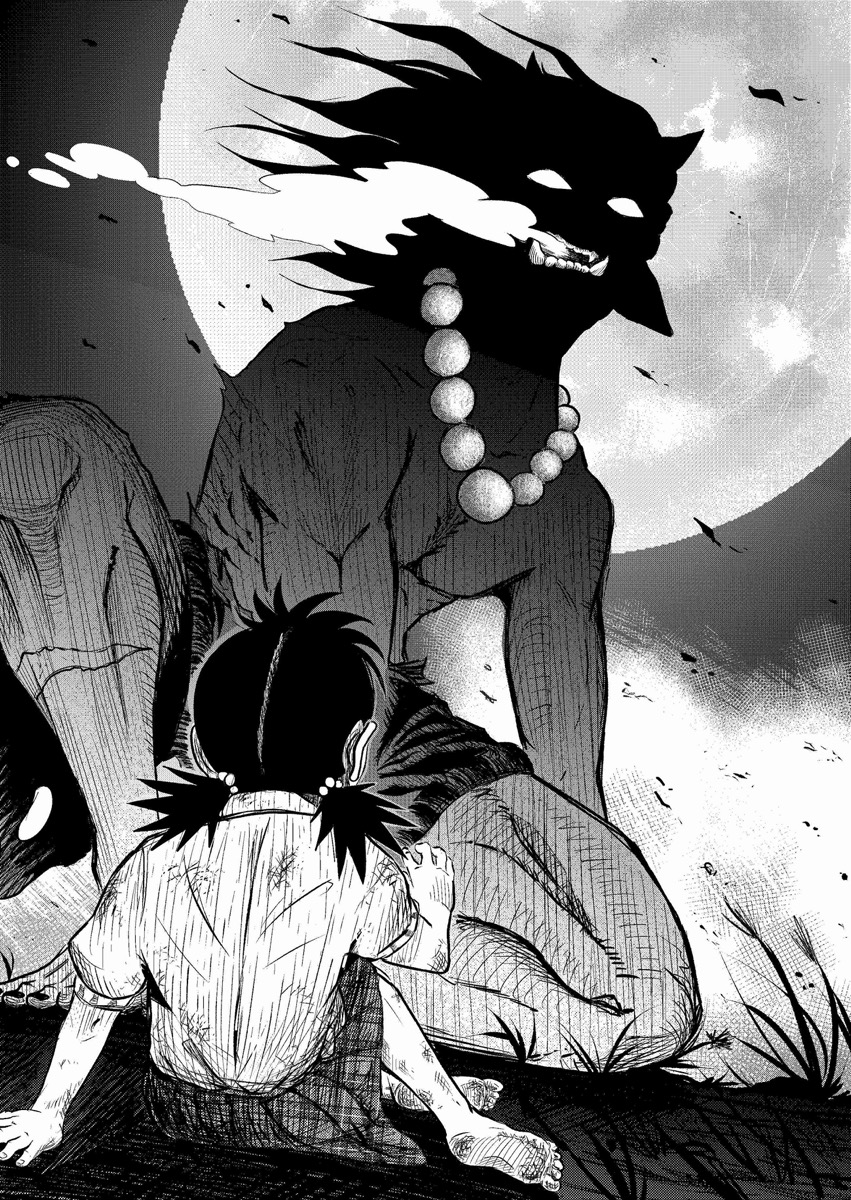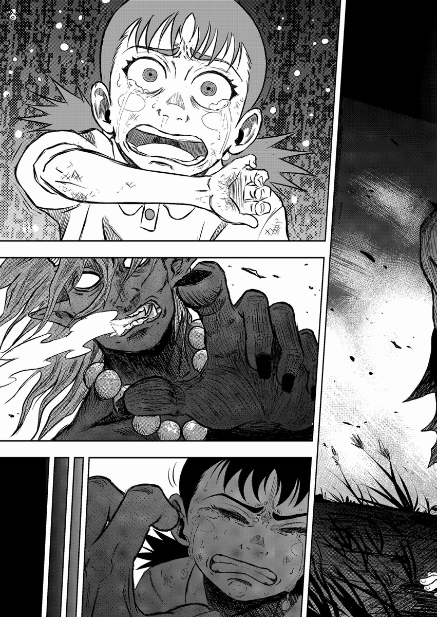 | “My favorite part and the one I enjoyed drawing the most is undoubtedly the scene in which the main character meets the imposing Oni after saving her.” | |