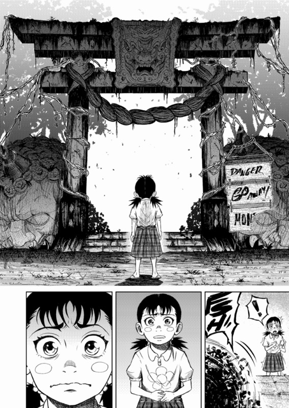 | “My favorite part and the one I enjoyed drawing the most is undoubtedly the scene in which the main character meets the imposing Oni after saving her.” | |