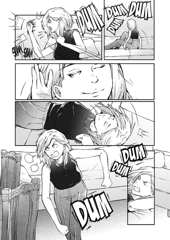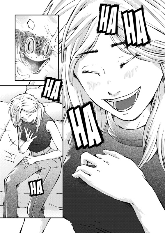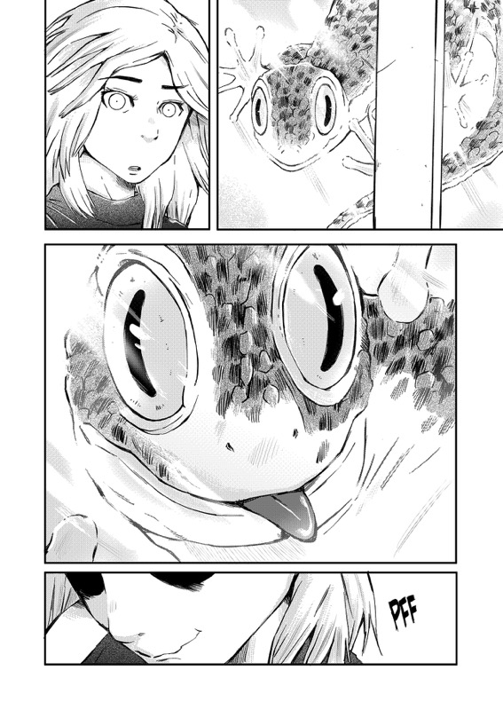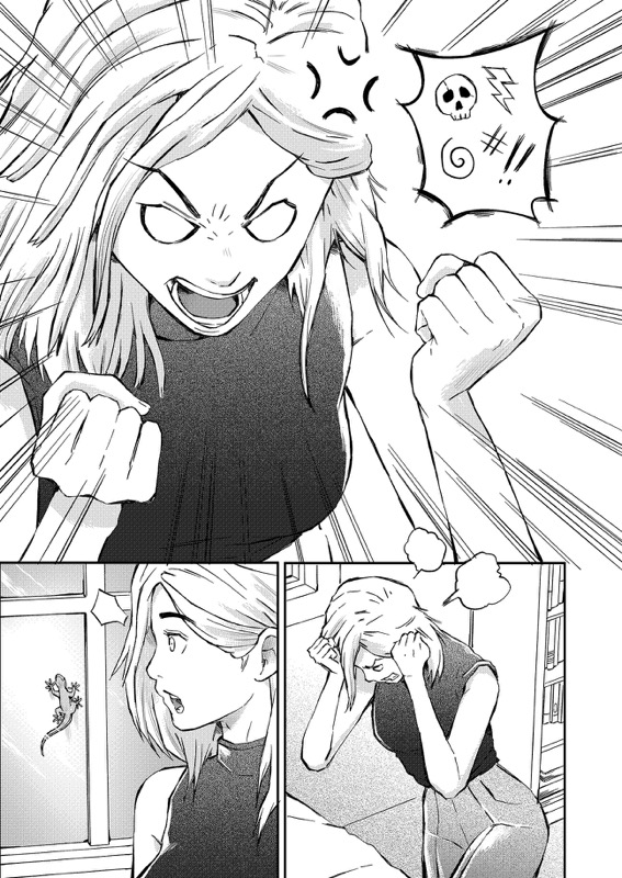 “I love the girl's expression on the first page, when she is angry and sad at the same time. And of course I love the funny face of the gecko at page 8... When I was drawing its tongue, I couldn't help but laugh to myself!”