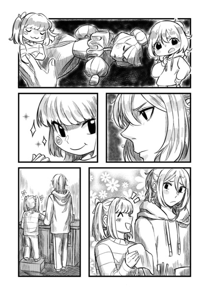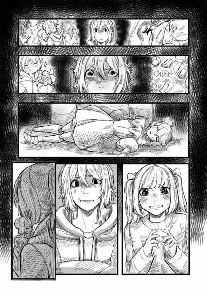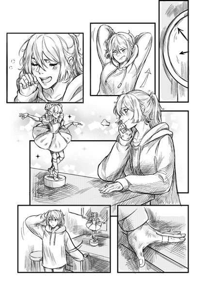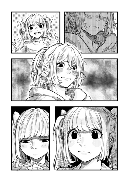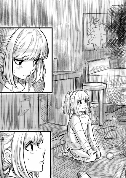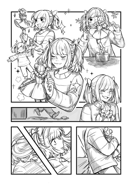 “drawing the little sister emotions while playing with the doll , the expressions were fun to draw, and doing the hatching”