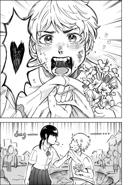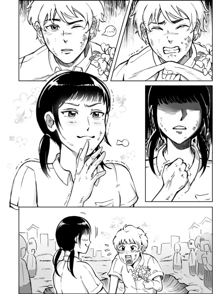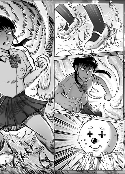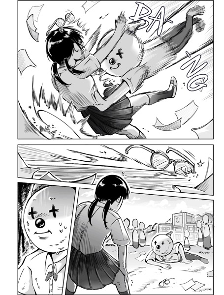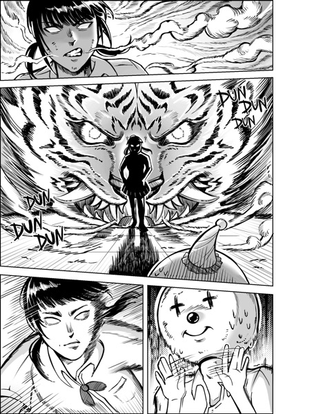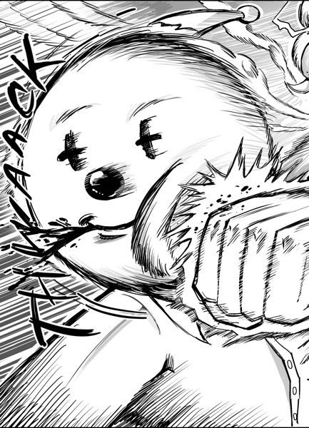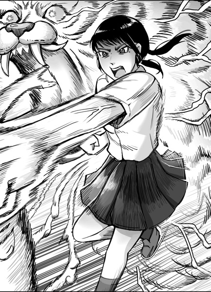 “I really liked drawing the double page spread in this manga, and the punch felt really cool to portray the girl's anger!”