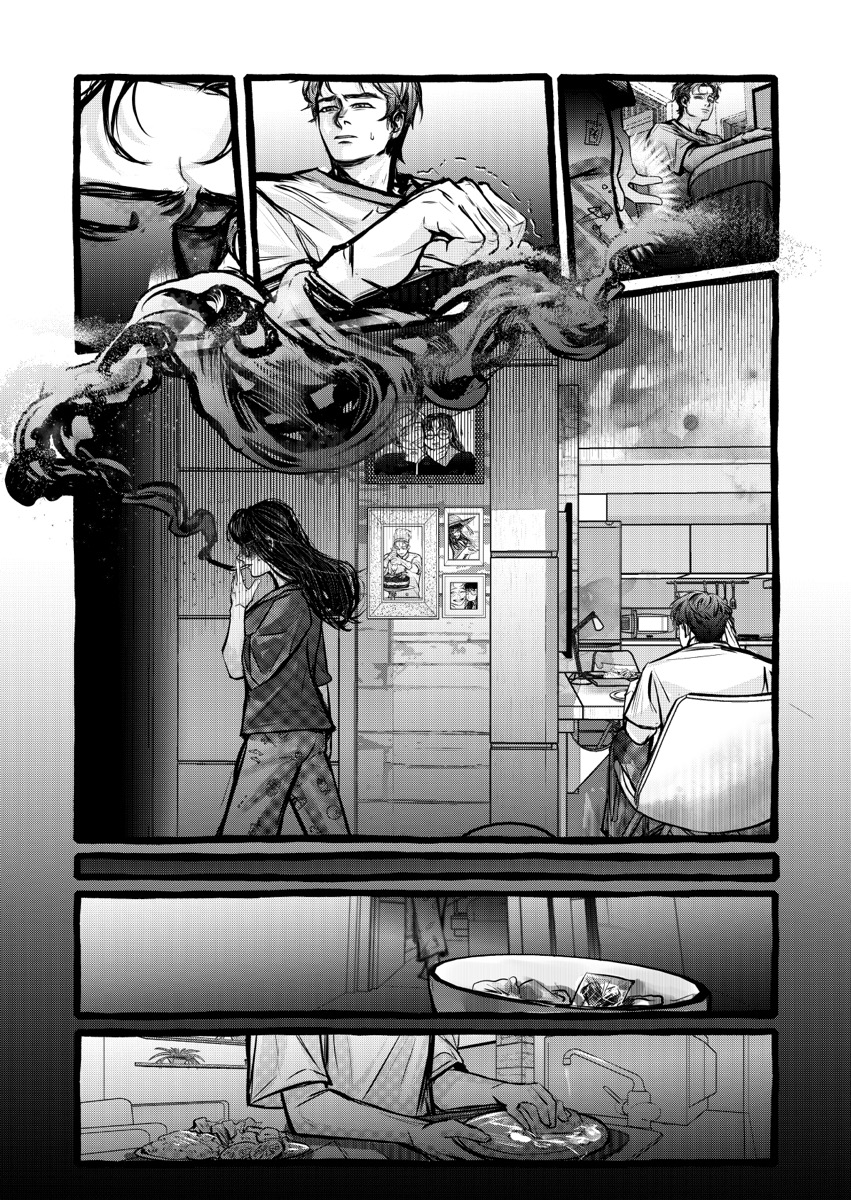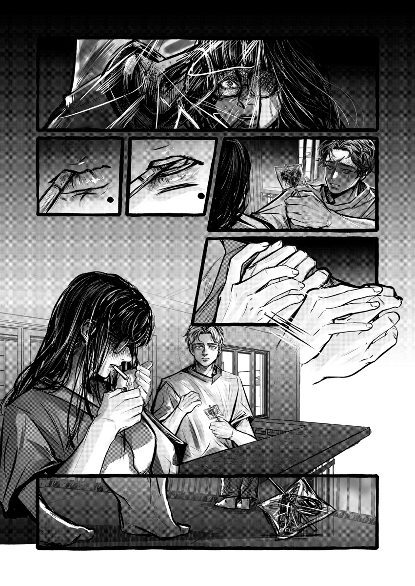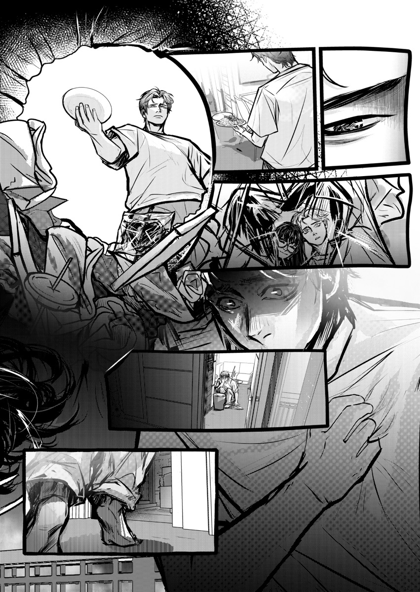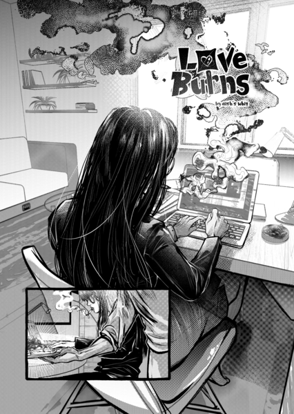 “My favorite part of the story is the spread page, where I tried to draw a broken heart between the pages. I truly wanted to show the heartache both of my characters are going through, but can't convey their feelings. Therefore, it shows whats boiling inside of them, metaphorically and artistically.”