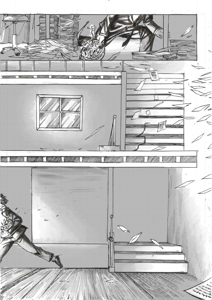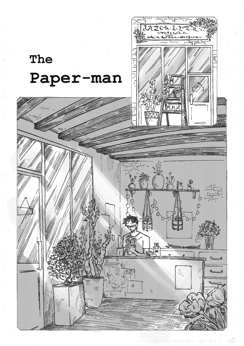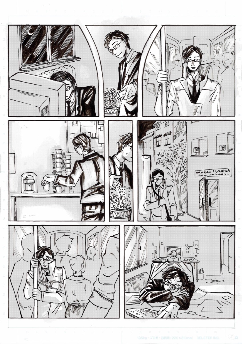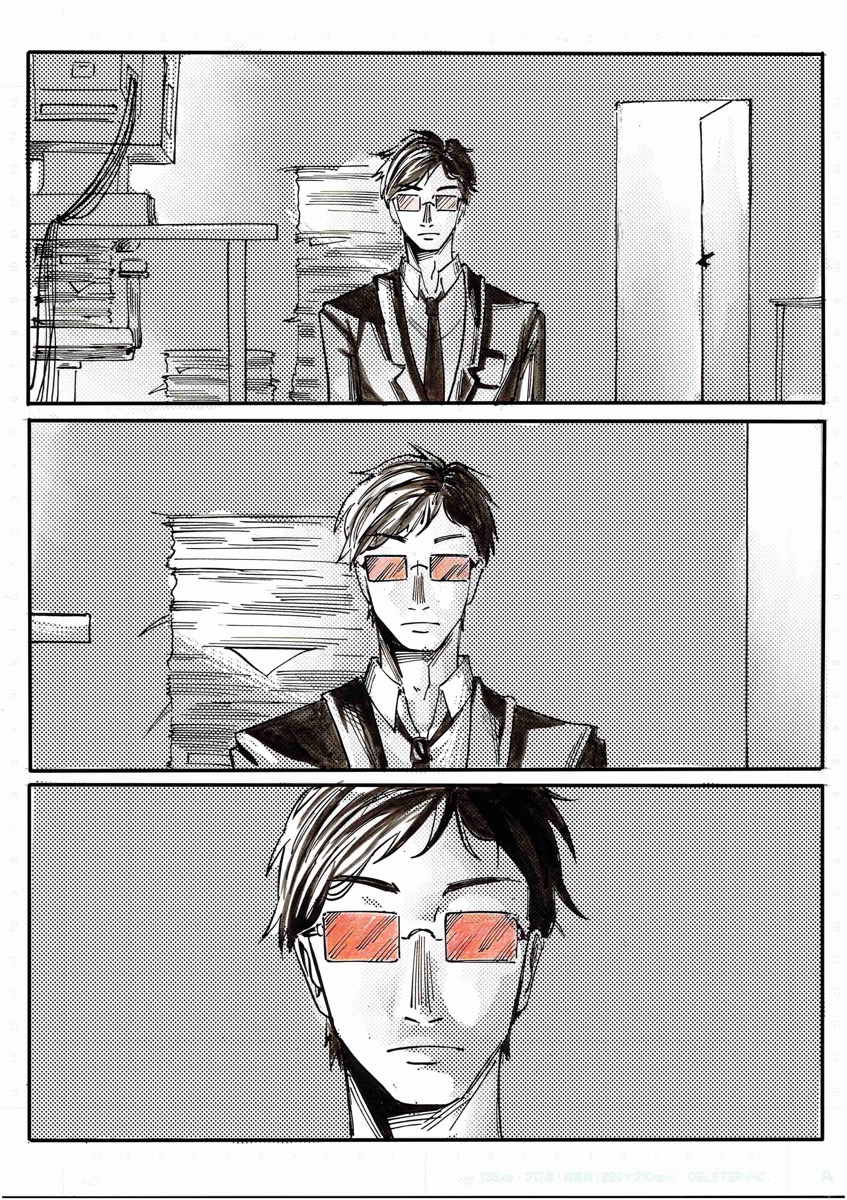 | “My favourite par is the moment when the main character look at himself in his coffee. I had this idea wile re-watching Brazil, by Terry Gilliam. In the movie, there's someone who is covered by papers, litterally eaten by administration!” | |
