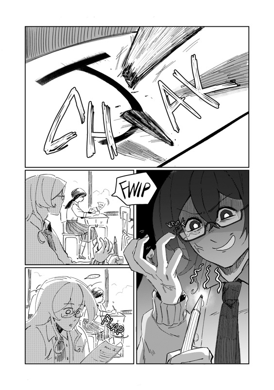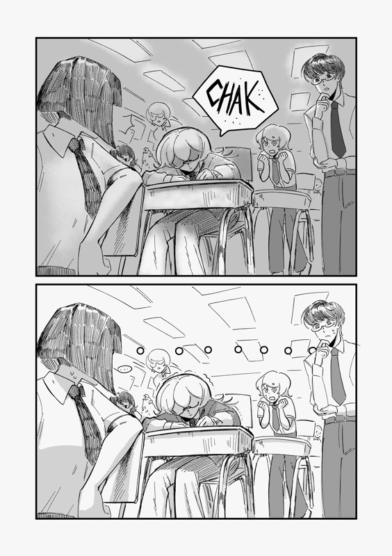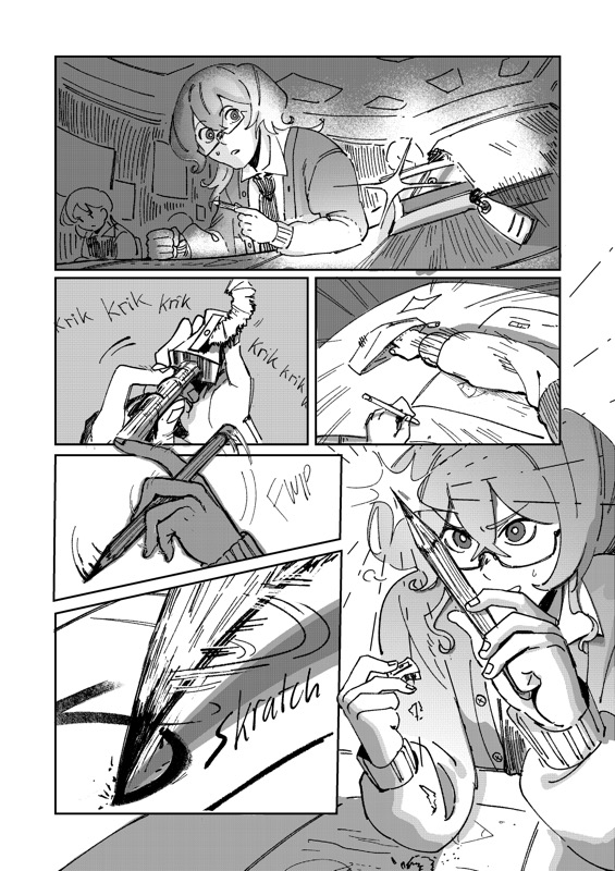 “I loved coming up with the silly narrative that a perfectionist can only be at ease when his pencil is completely sharp! I definitely relate to this character a lot (plus, this reflects the sheer amazement when I got my first automatic pencil).”