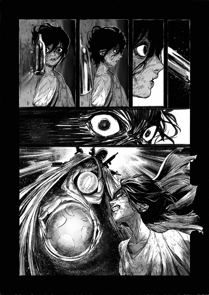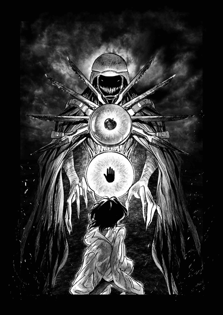 | “In this work, I wanted to symbolize the journey of what innocent people have to go through in some parts of the world. Where you they forced to move forward without a glimpse of hope and what they have to give in return to stay alive.” | |