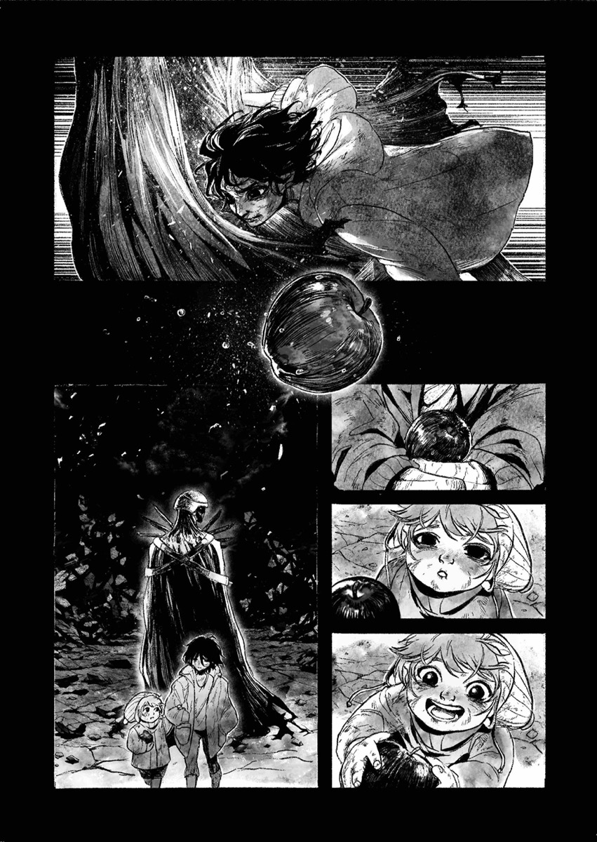 | “It is difficult to choose a favorite part especially in a story that is full of despair. However, for me, it has to be the part where the girl is with her brother under the coat. Having a moment of piece despite all the destruction surrounding them.” | |