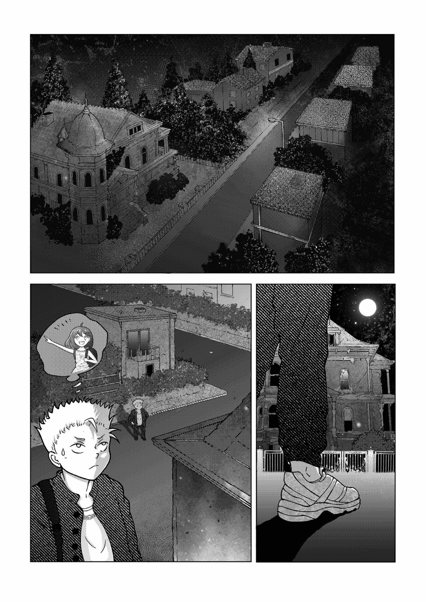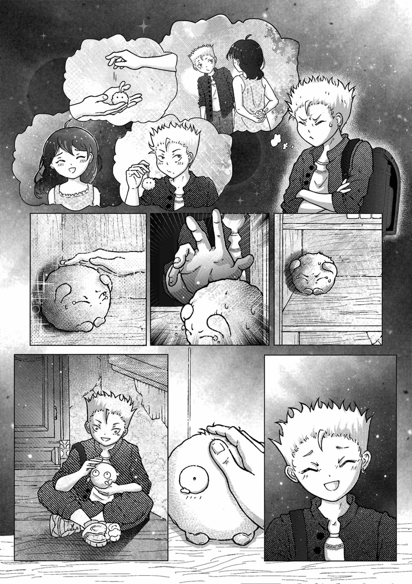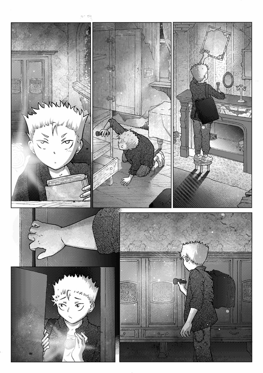 “When asked about his favourite part of the story, Joe Fuyutaku said it was where the boy was spooked by and then spooked the little creature :) I mostly love the pages where the boy searches through the old house and the house's magical atmosphere. It was a great pleasure to put the story on paper.”