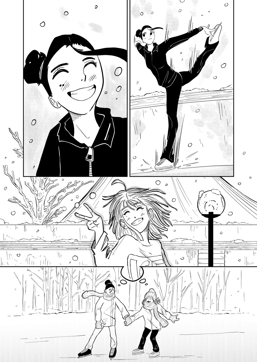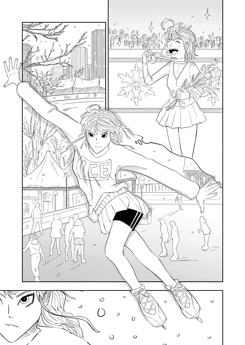 | “I like how I came up with the idea for the manga: I was wandering around the city when I saw some teenagers ice skating. Somehow they inspired me to write this story.” | |