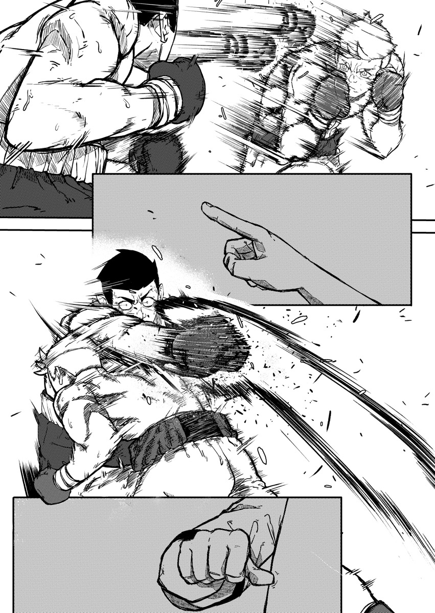 “My favorite part of this one-shot is the moment when he overcomes his opponent, stands tall before him, and remembers the promise he once made to himself as a child while looking at the poster of the boxing champion of that time”
