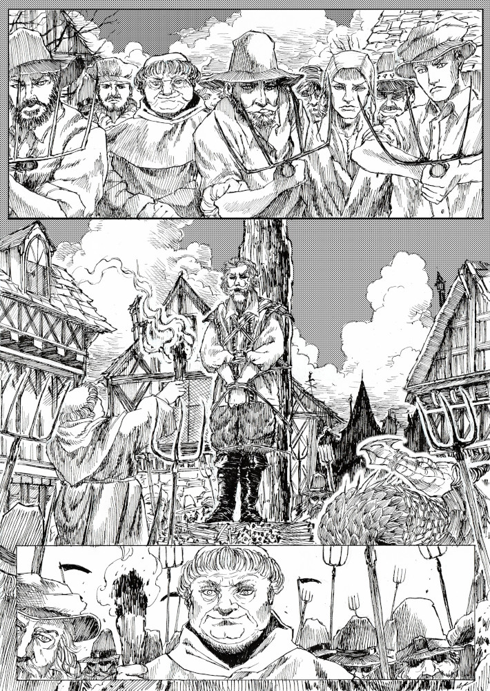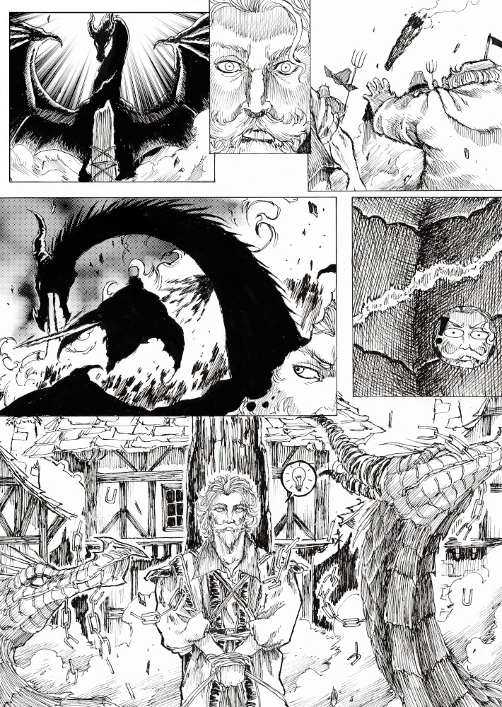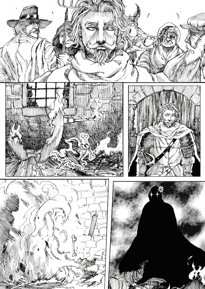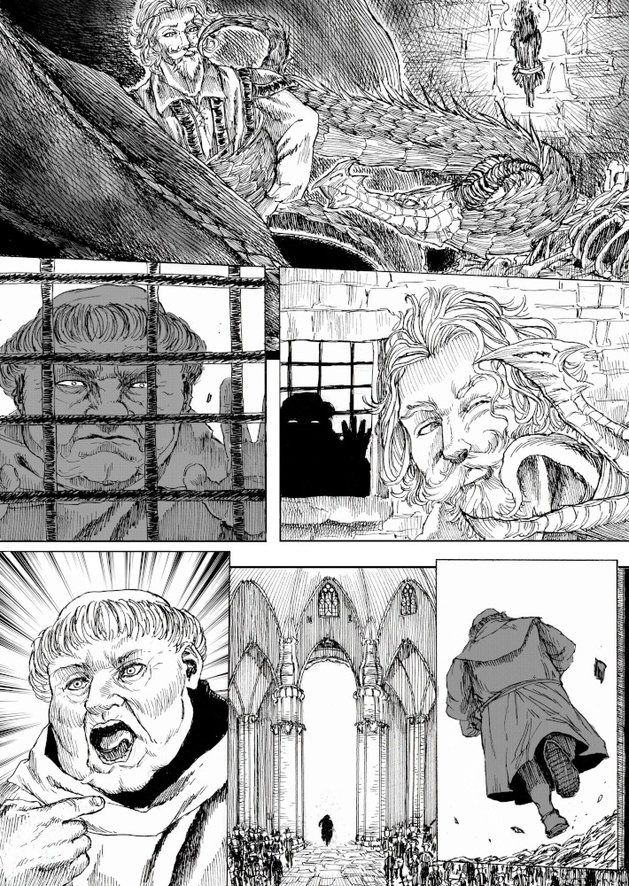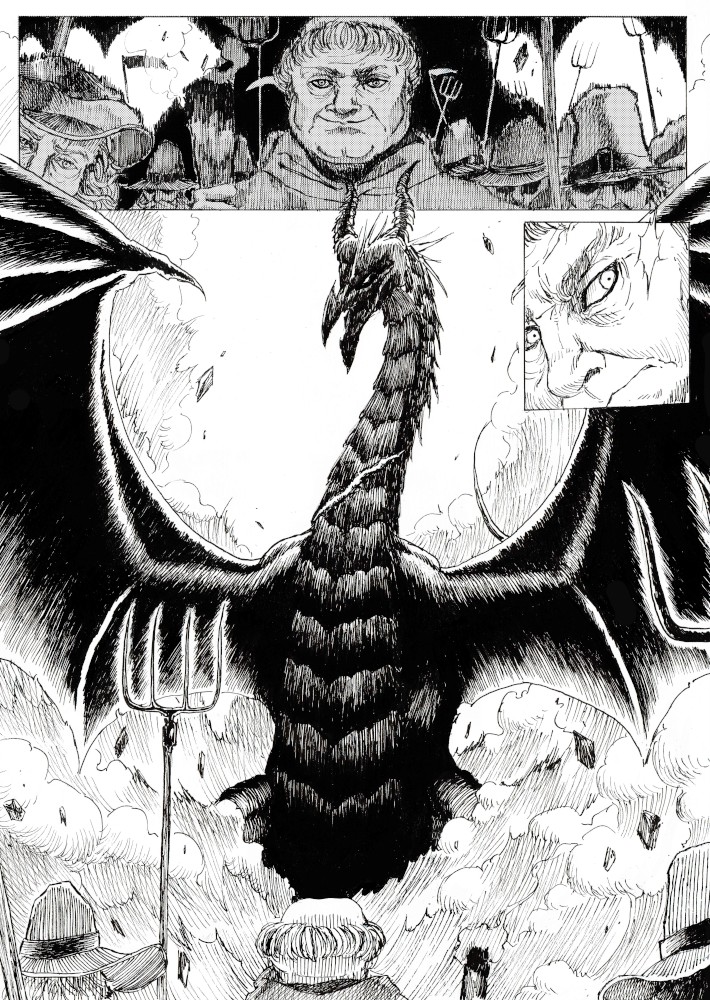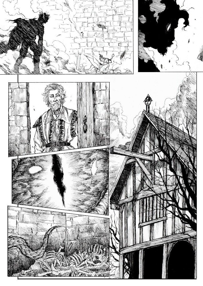 | “I'll be honest, this wasn't easy to complete. Not only because of the handwork itself, but also because of the expiring date: I discovered the contest only 15 days before it ended, and I had never inked a manga page before. But the idea of Silent Audition sounded so great to me that i understood I had to make my best and finish it before I ran out of time. I wanted to fill it with fantasy and historical elements, a big package of seinen-style action scenes, but also I didn't want to draw the usual story about a puppy and his mother, no. I wanted a DRAGON to be the protagonist. I took the pencil, wrote for a night, and the result was : Imprinted. I hope you will enjoy it. P.S: If you are not tired of reading this incredibly long comment, I wanted to make you know the story is called "imprinted" from "imprinting", the psychological phenomenon that makes some animals (ex. ducks) think the first thing they see when they're born is their mother. Please forgive all the grammatical mistakes in this comment.” | |