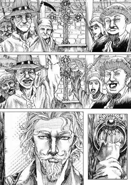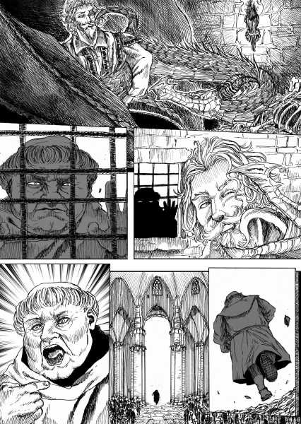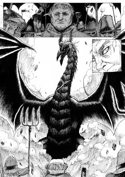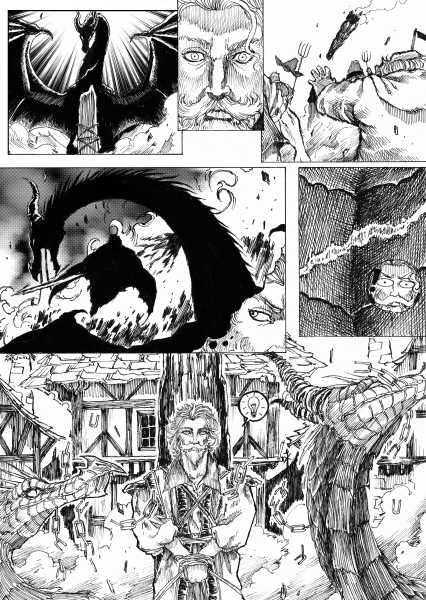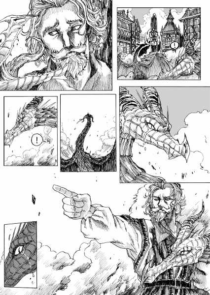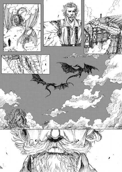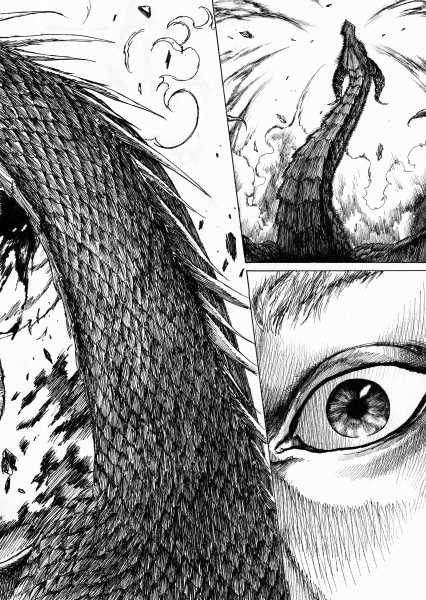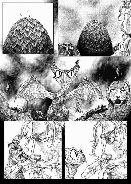 | “I'll be honest, this wasn't easy to complete. Not only because of the handwork itself, but also because of the expiring date: I discovered the contest only 15 days before it ended, and I had never inked a manga page before. But the idea of Silent Audition sounded so great to me that i understood I had to make my best and finish it before I ran out of time. I wanted to fill it with fantasy and historical elements, a big package of seinen-style action scenes, but also I didn't want to draw the usual story about a puppy and his mother, no. I wanted a DRAGON to be the protagonist. I took the pencil, wrote for a night, and the result was : Imprinted. I hope you will enjoy it. P.S: If you are not tired of reading this incredibly long comment, I wanted to make you know the story is called "imprinted" from "imprinting", the psychological phenomenon that makes some animals (ex. ducks) think the first thing they see when they're born is their mother. Please forgive all the grammatical mistakes in this comment.” | |
