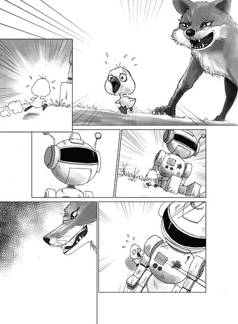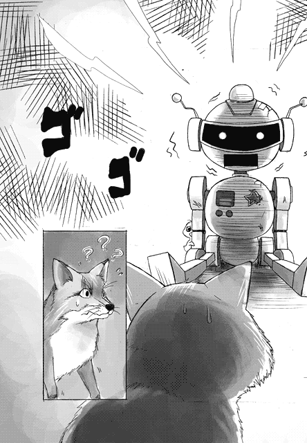 | “When the robot toy suddenly "ON" again and scare the fox.” | |