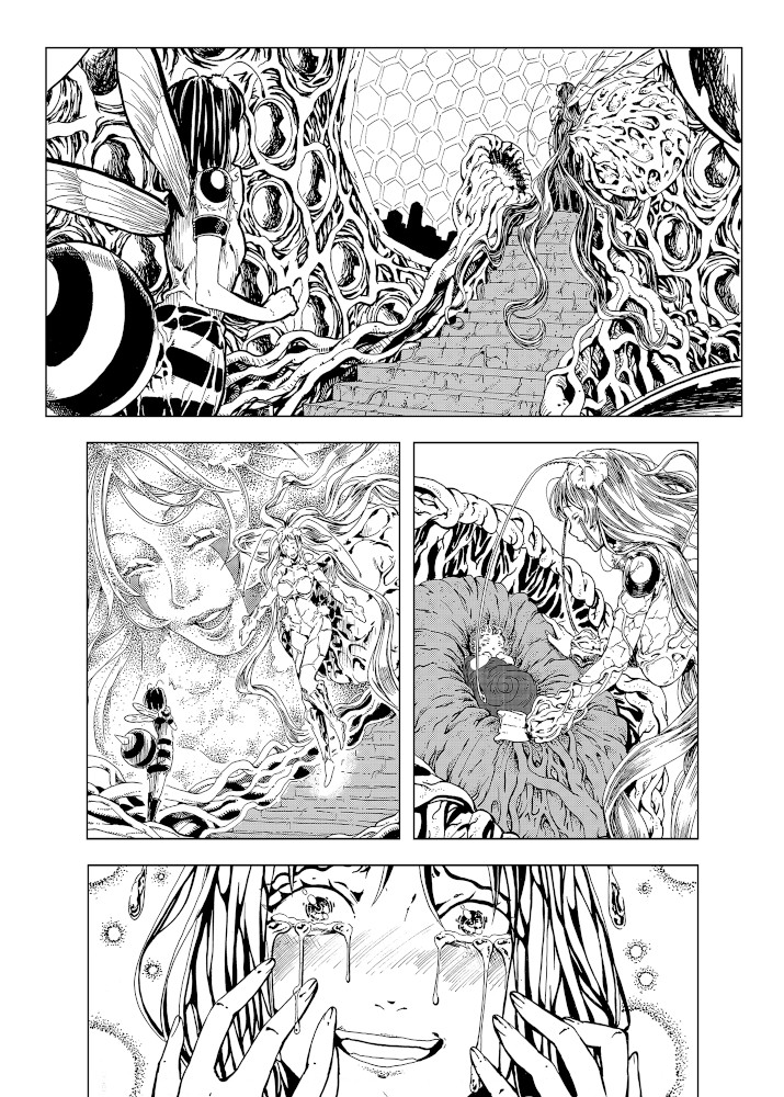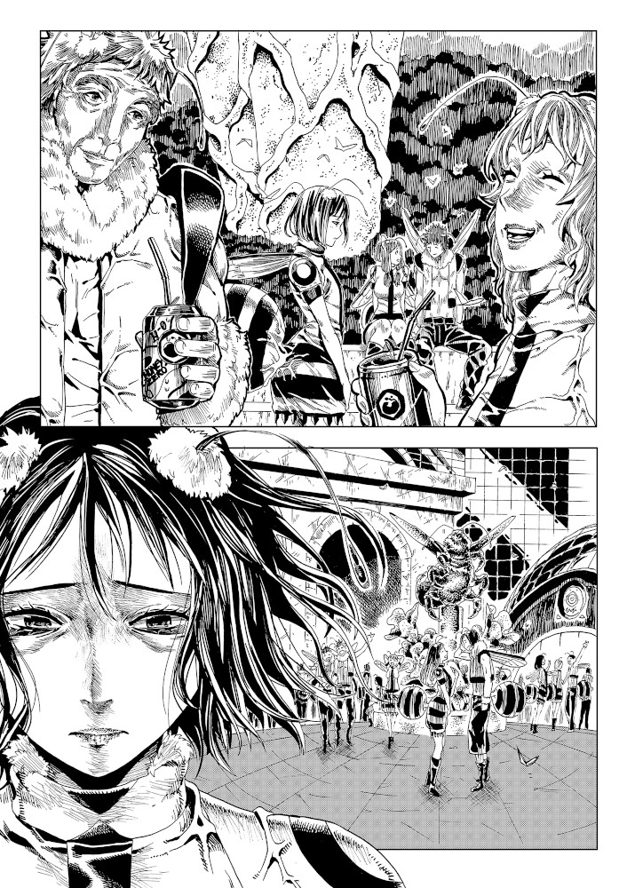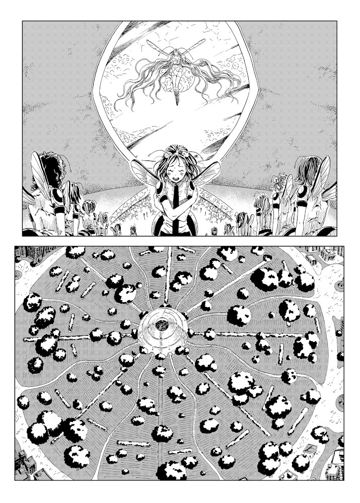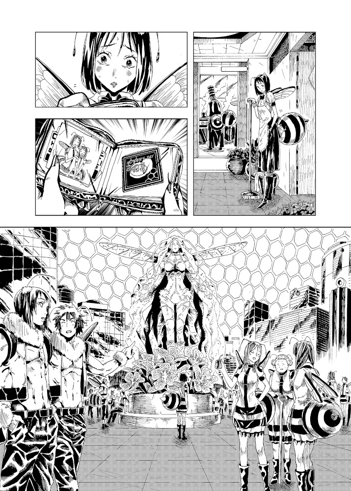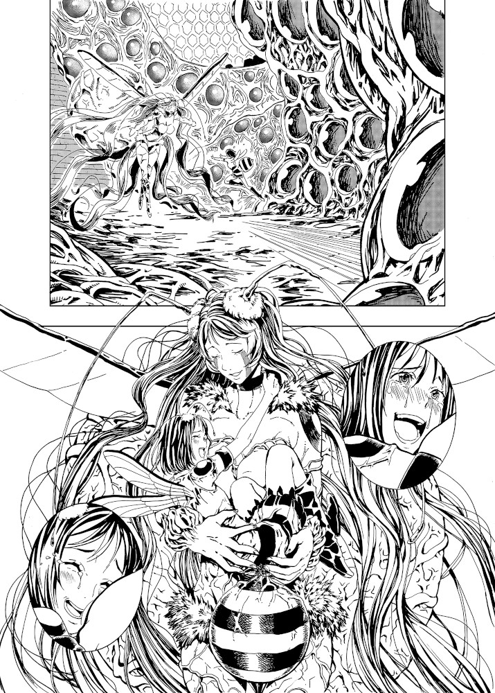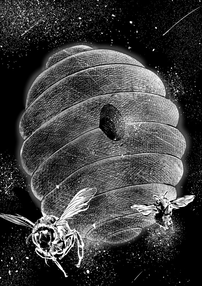 | “We made this story as a comparative of how we, humans, are dealing with the feelings in a world that requires minus humanity. And for this, I think the honebees can teach us a lot. Honeybees have literally a perfectly organized society based on a kind of mother queen will, in which everything exists due to the queen bee, and she only exists to expand her hive. And that's why we chose this name to the story. With a social and political system based on the mother. An sick love that it's possible to make use to control the components of their society. In a comparative, they need to meet the queen sometimes to not feel empty inside. I think it's the same with human relationships, that's why even when we get out of our parents home we need to visit them, to replenish our soul. Well, that's it. I hope you all like it as we liked to do. Thanks for the opportunity.” | |