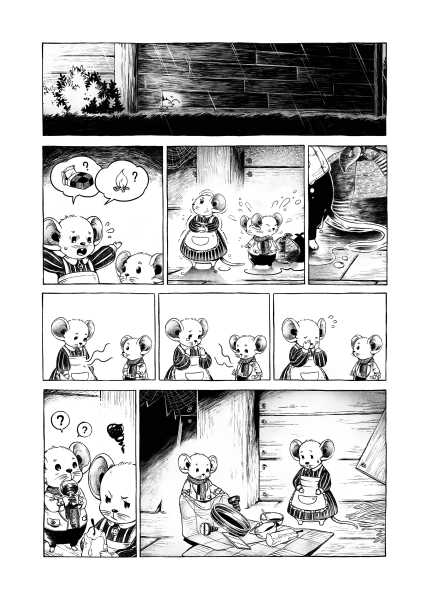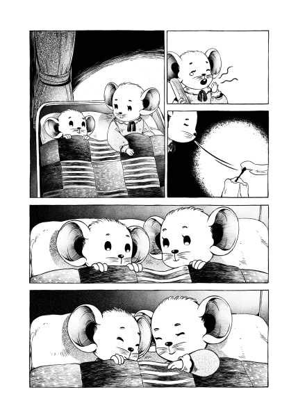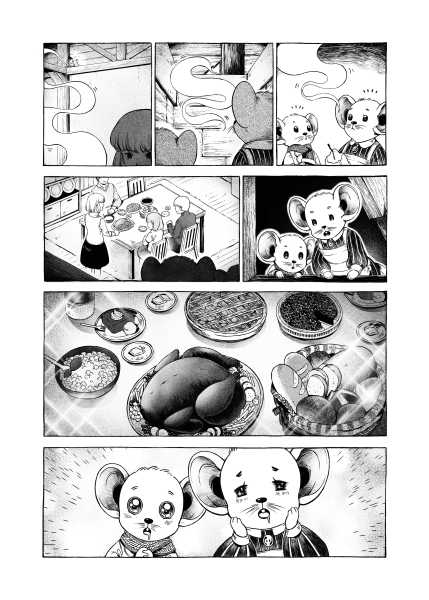 | “I tried to detail the backgrounds to create the atmosphere of a children's fairytale and highlight the feeling between a young child and their mother. I feel this is the strong point of my manga.” | |