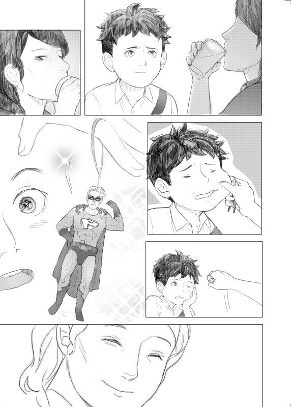 “The best part of the manga will always be the ending. Start from when he looked at the picture he drew once in a tree, and after reminiscing everything, he then realized he has never been the superhero by re-drawing the picture again.”