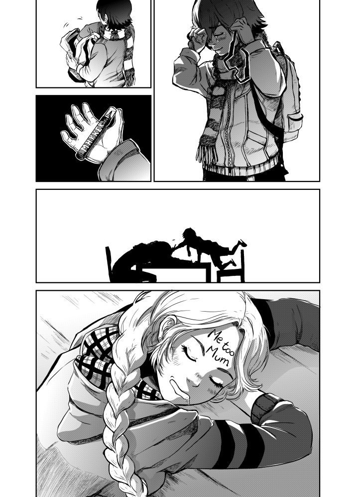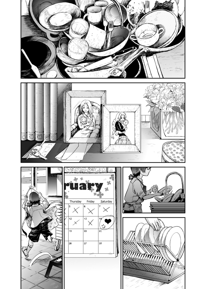 | “A young and unprecocupied mother, a resposible and serious son. He arrives home, after a disappointing Valentine's Day and discovers that every dish that he whased earlier are dirty again. But this time is for a good reason!” | |