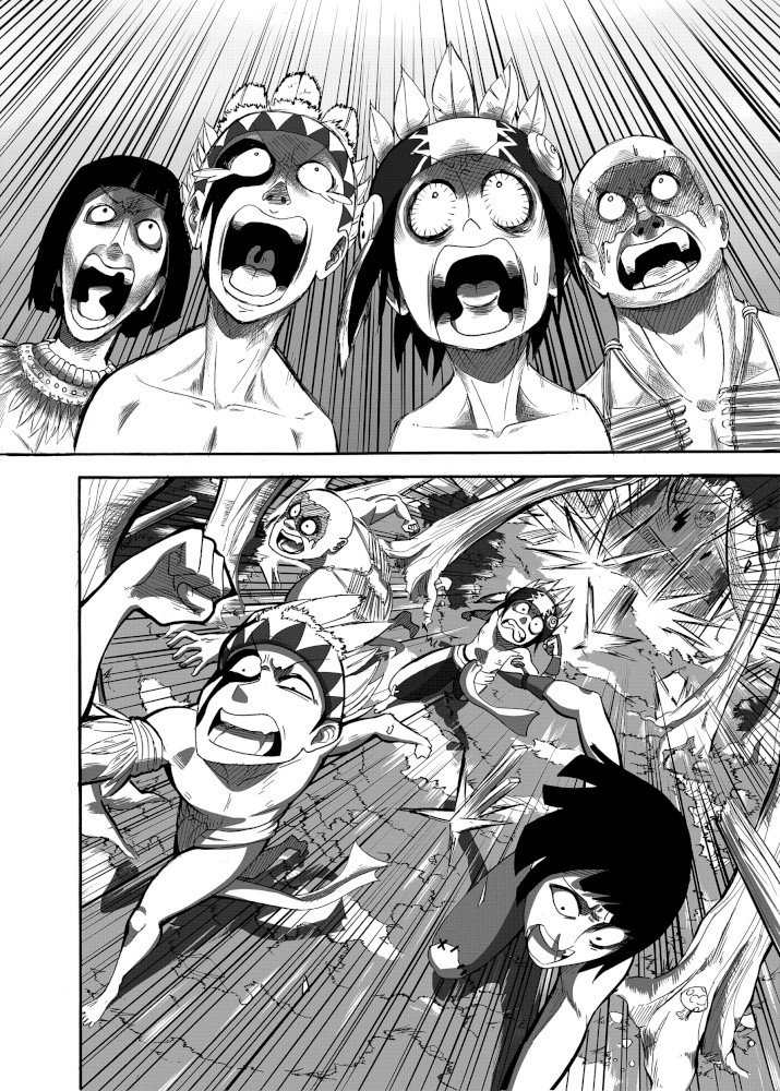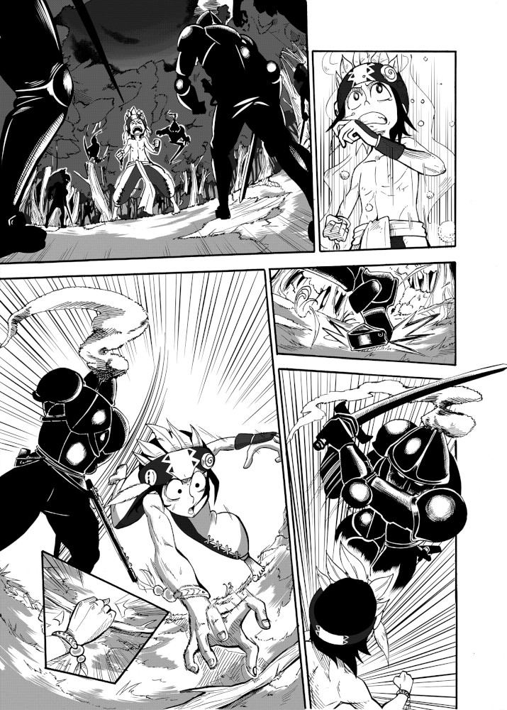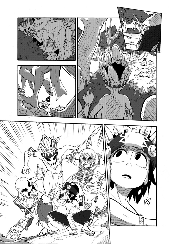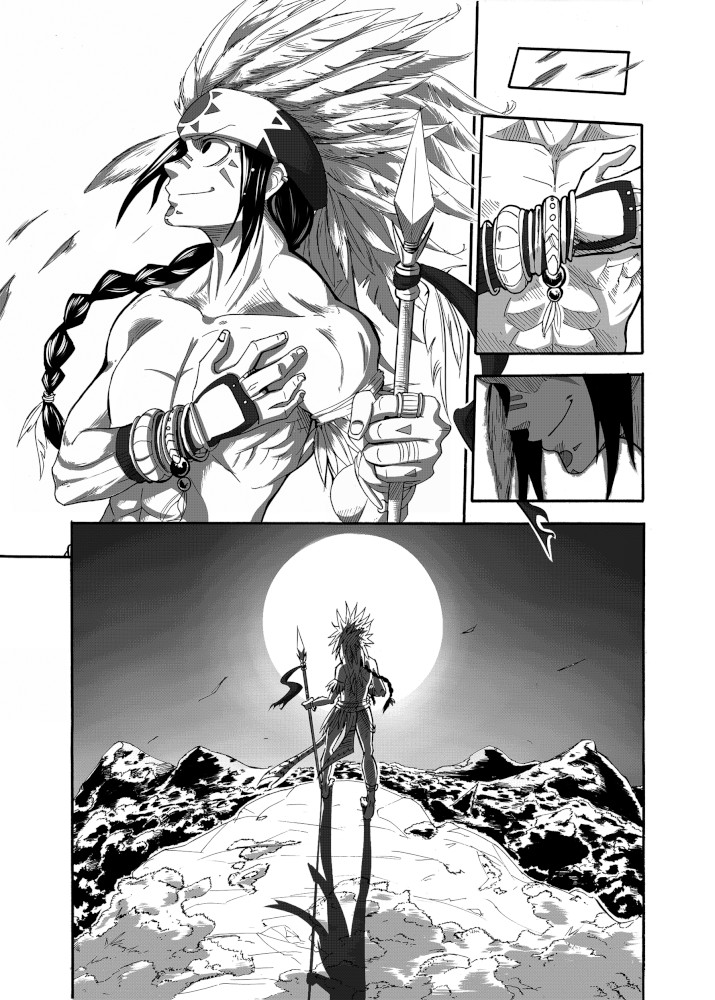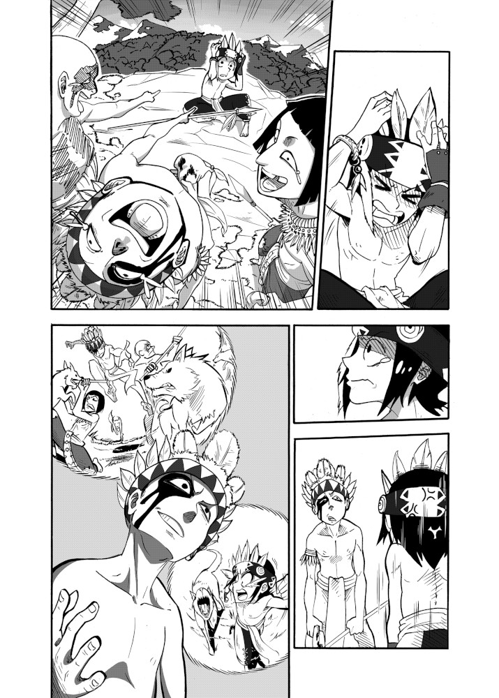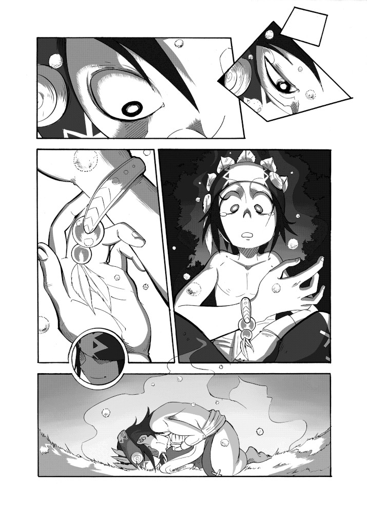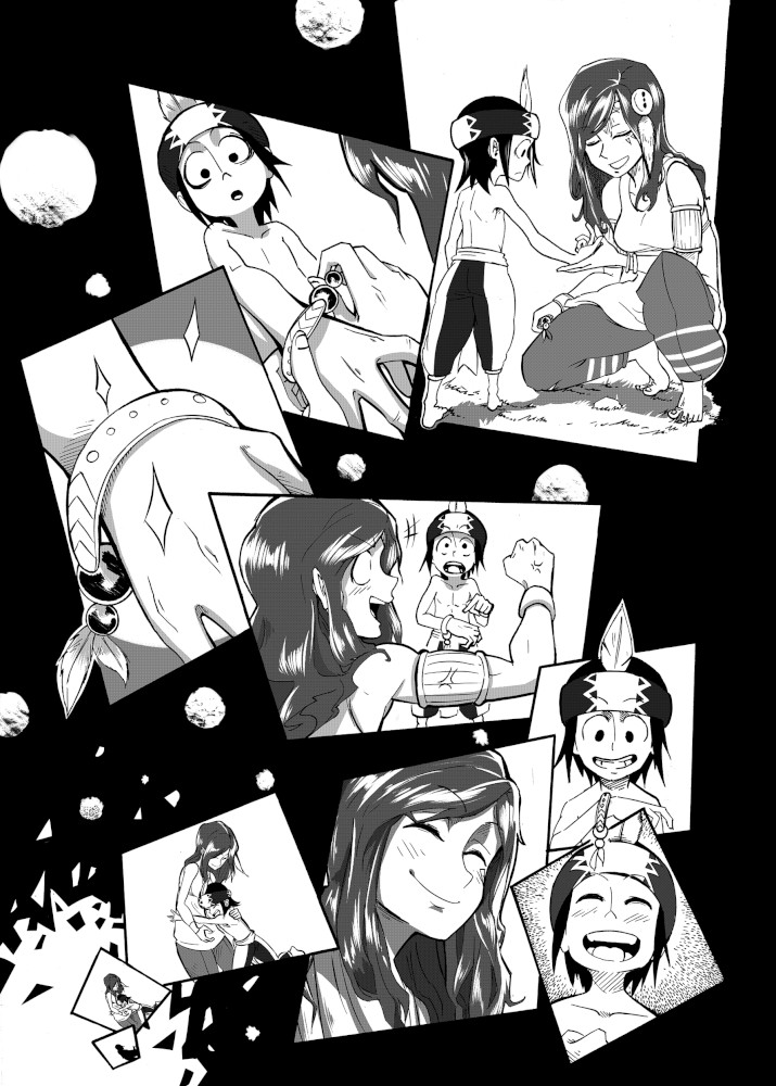 | “He wanted to show that indigenous children thought to see the eclipse, at that time people were afraid of the unknown, that's why I wanted to express that feeling with a huge ship falling from the sky.” | |