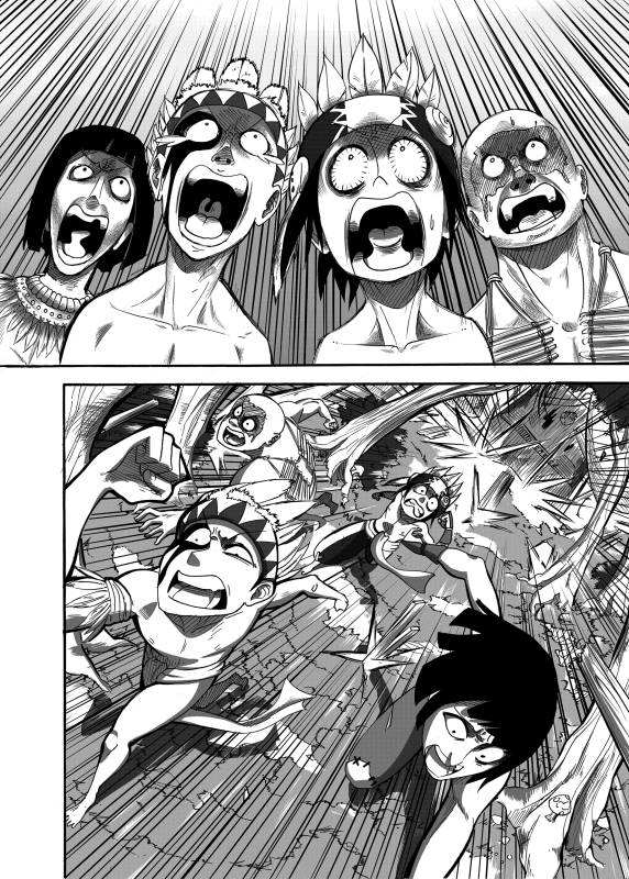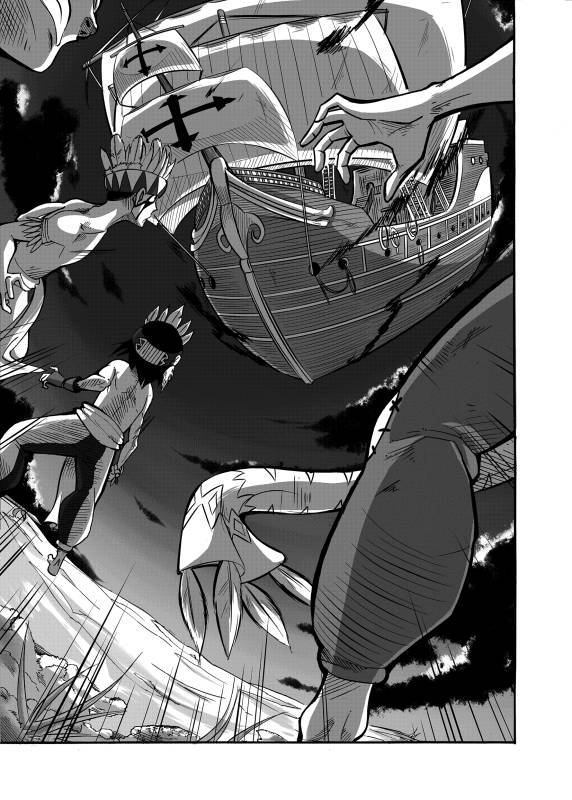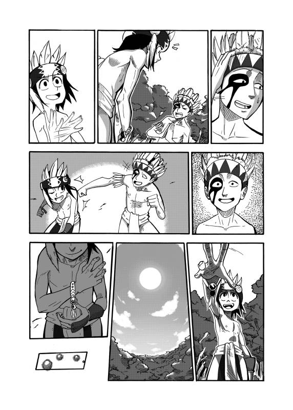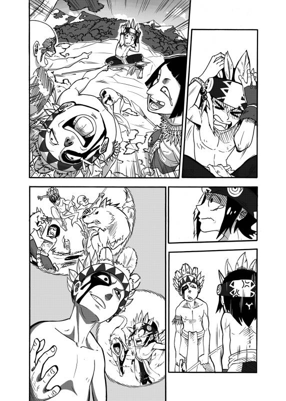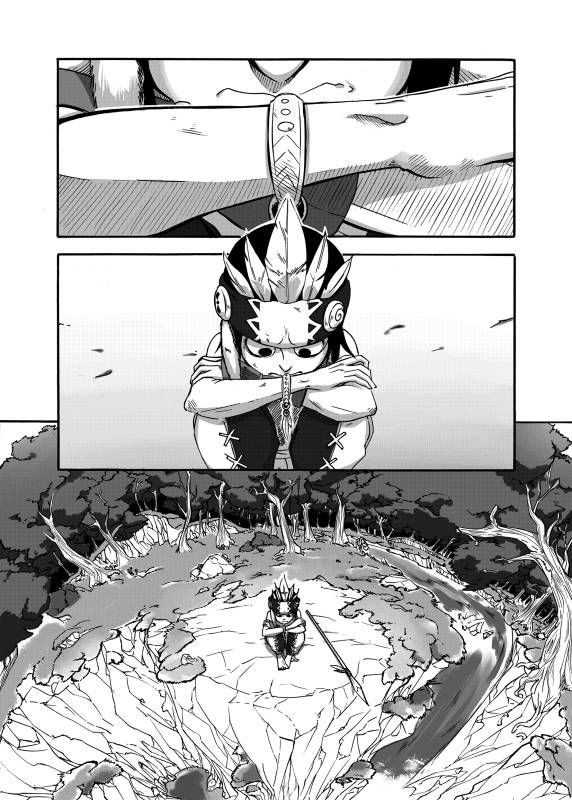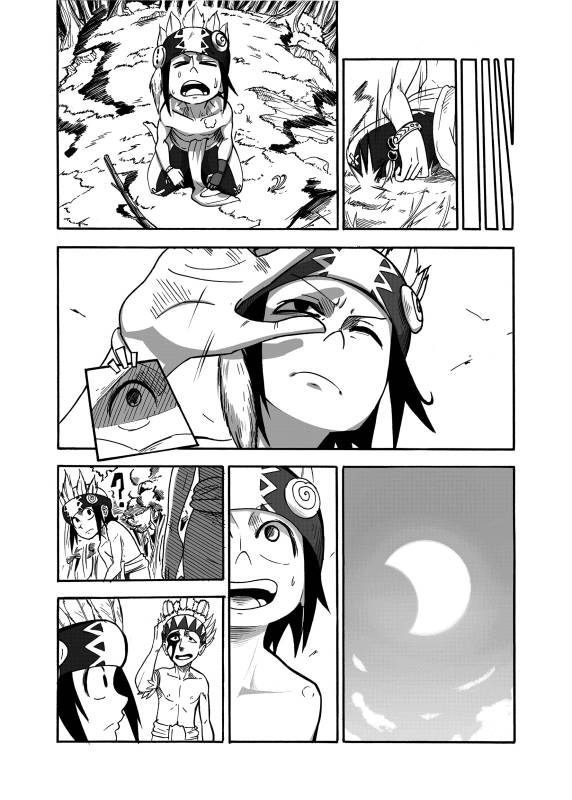 | “He wanted to show that indigenous children thought to see the eclipse, at that time people were afraid of the unknown, that's why I wanted to express that feeling with a huge ship falling from the sky.” | |