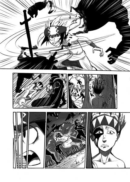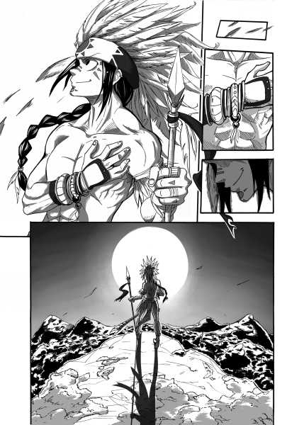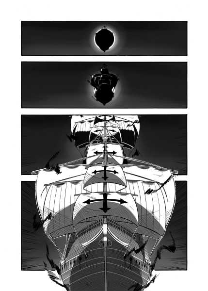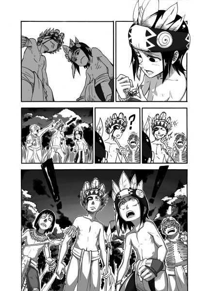 | “He wanted to show that indigenous children thought to see the eclipse, at that time people were afraid of the unknown, that's why I wanted to express that feeling with a huge ship falling from the sky.” | |