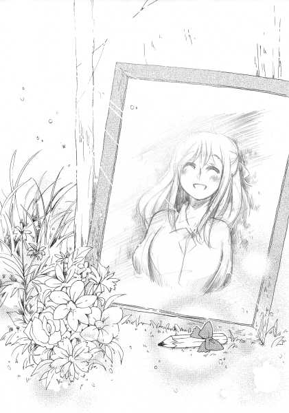 “When the girl was dissappearing. The boy tried to use the pencil that she gave him to draw her to make her alive again... only in his mind.”