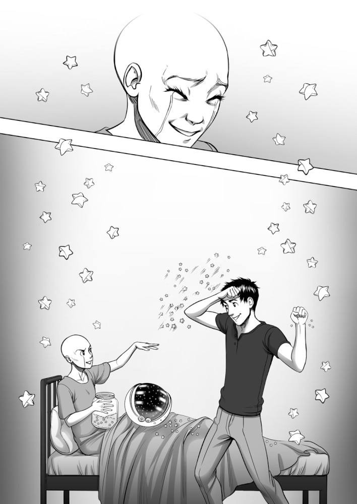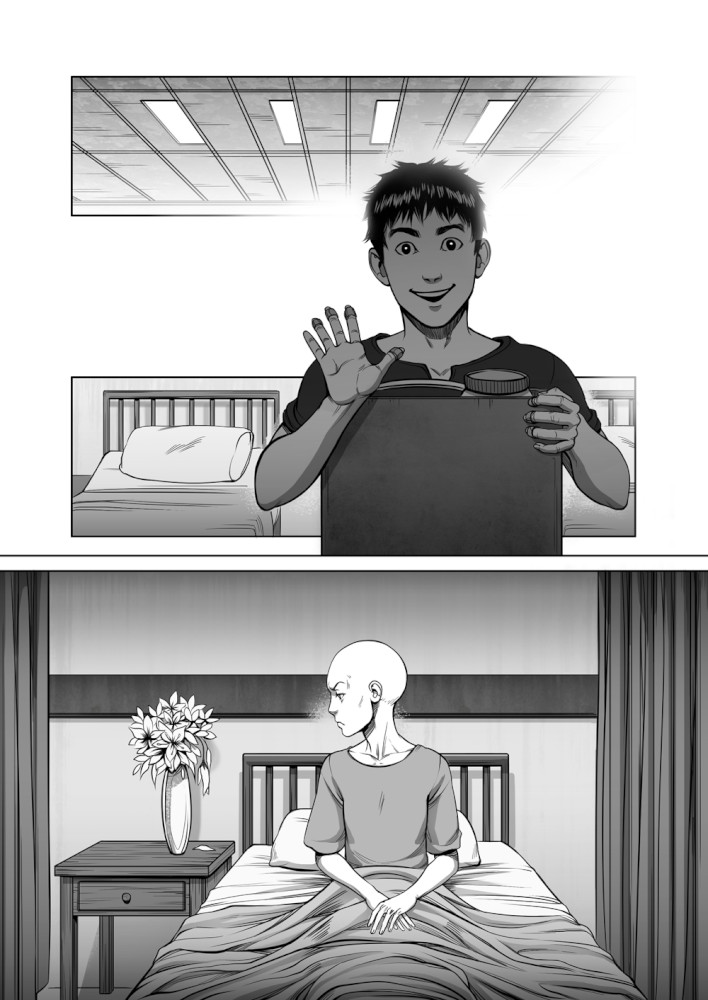 | “A boy with bandaged fingers gives his ill friend the gift of hope.” | |