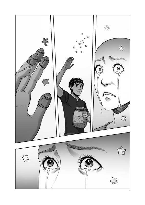 “A boy with bandaged fingers gives his ill friend the gift of hope.”