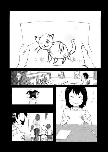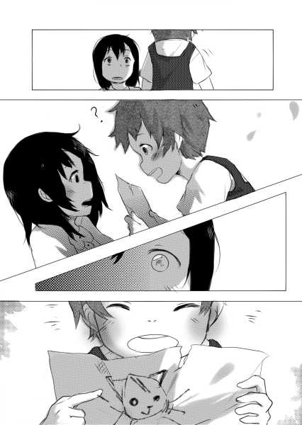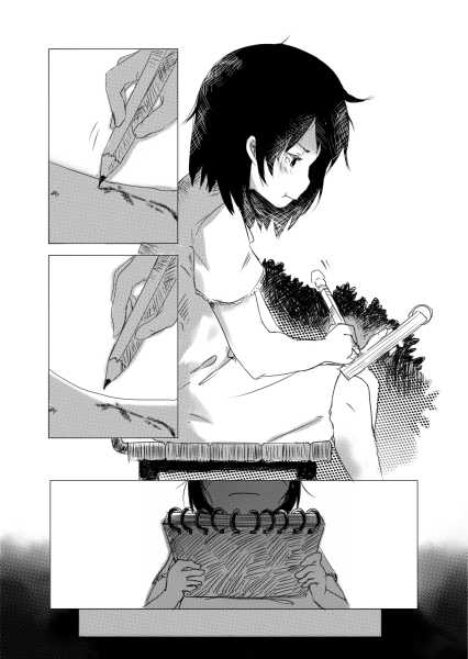 | “As an artist, I constantly see people who are better than me, and sometimes it discourages me. In this manga, I tried to convey the feeling of hopelessness I get sometimes. But ultimately, I left it on a good note, as the girl remembers that there are people who love and appreciate her art. Although she gave the gift, she ultimately received a gift from the boy as well, and it motivates her to continue forward.” | |