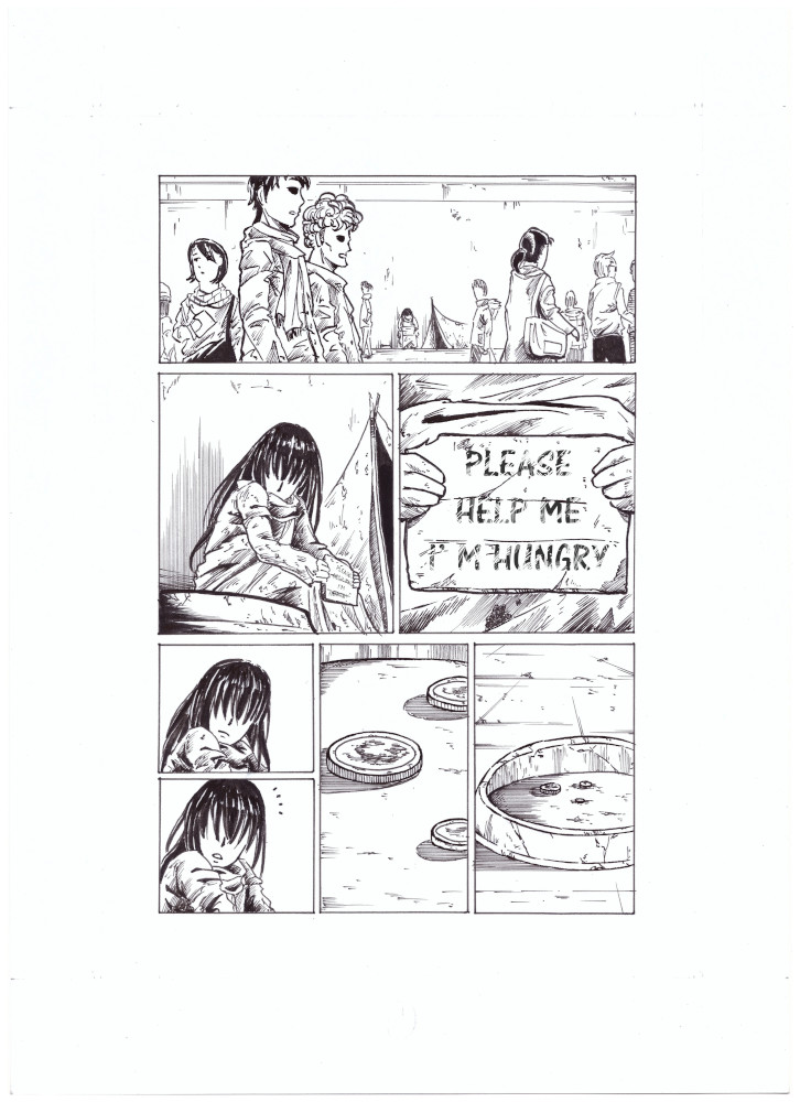 | “I created this story taking as a source of inspiration the current economic situation that my country is going through and the difficulty for a young man to be able to find work in this scenario. What can bring together a mendicant and a young man looking for a job? Hope you enjoy this simple story!” | |