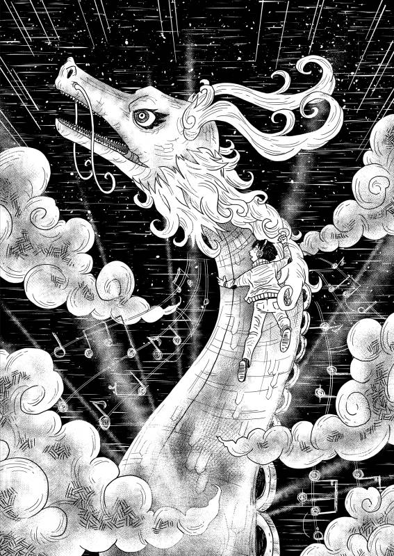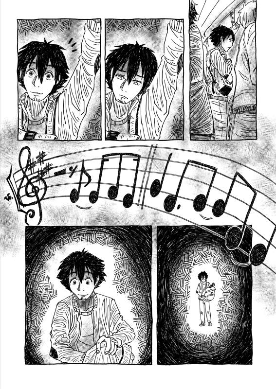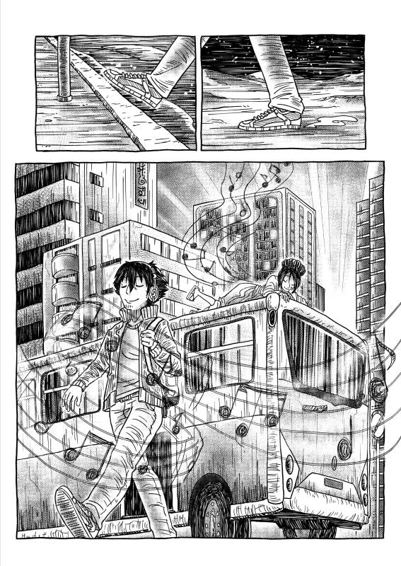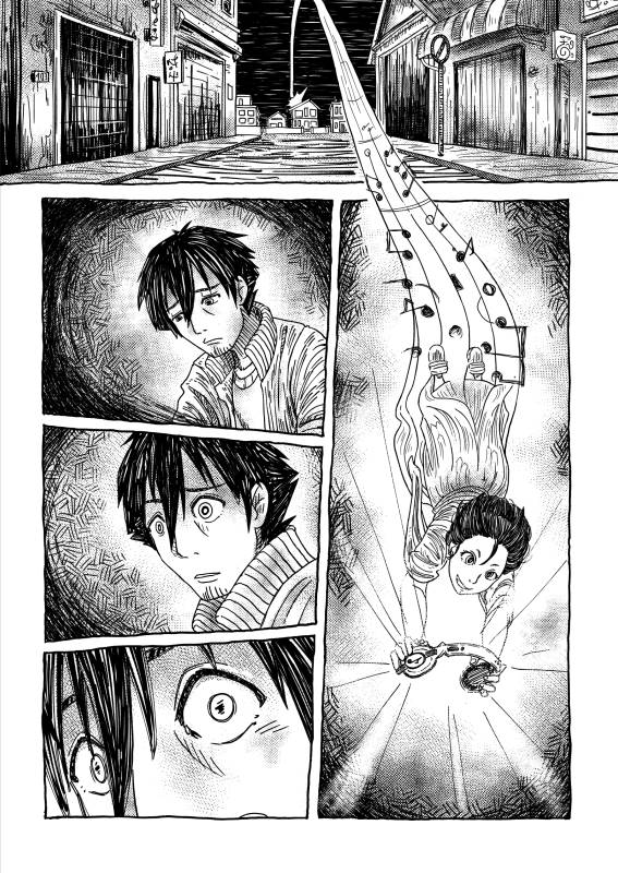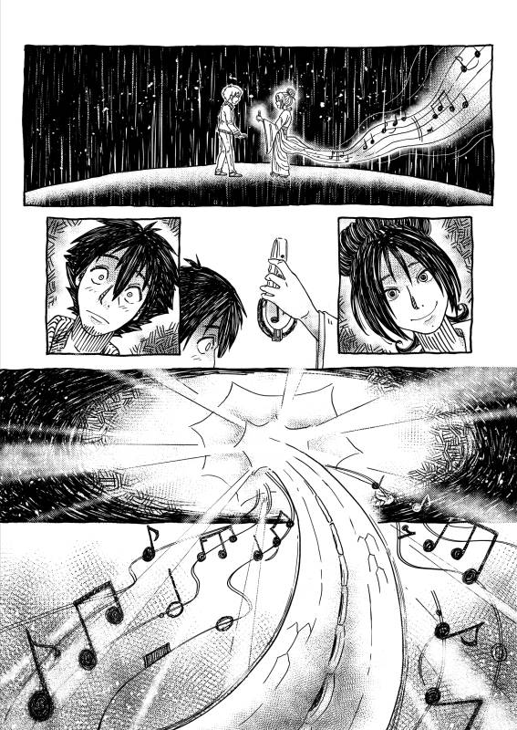 | “We wanted to demonstrate the importance music has in our lives through a fantastical view, sometimes being literally a gift saving us. Although the reasons behind the story are quite personal to us, we believe music is a universal language and anyone around the world can relate to, making this a perfect theme for a silent manga.” | |