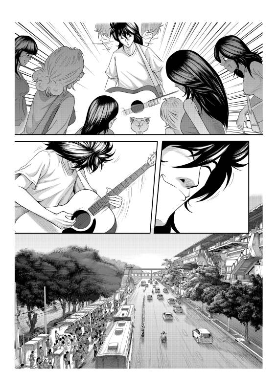 “A street musician performs his score to entertain the passersby in exchange for a few coins, because only playing music is his happiness. Imprinted deep inside his heart is the hope that, someday, someone will be interested in and understand his songs. Alas, who would appreciate a street musician such as himself? This realization leaves him alienated and isolated. But with either a mere coincidence or a blessing from the God of rock music, a kitten comes to his place. He begins with a gift and doesn't ask for anything in return, but what the little feline brings him is unexpectedly pleasant and meaningful. A bright new day doesn't have to wait until the sunrise, and their friendship and new lives just begin right before the sunset.”