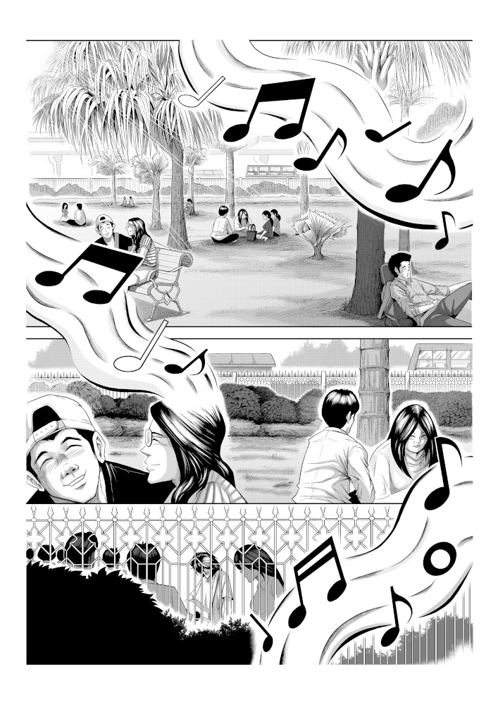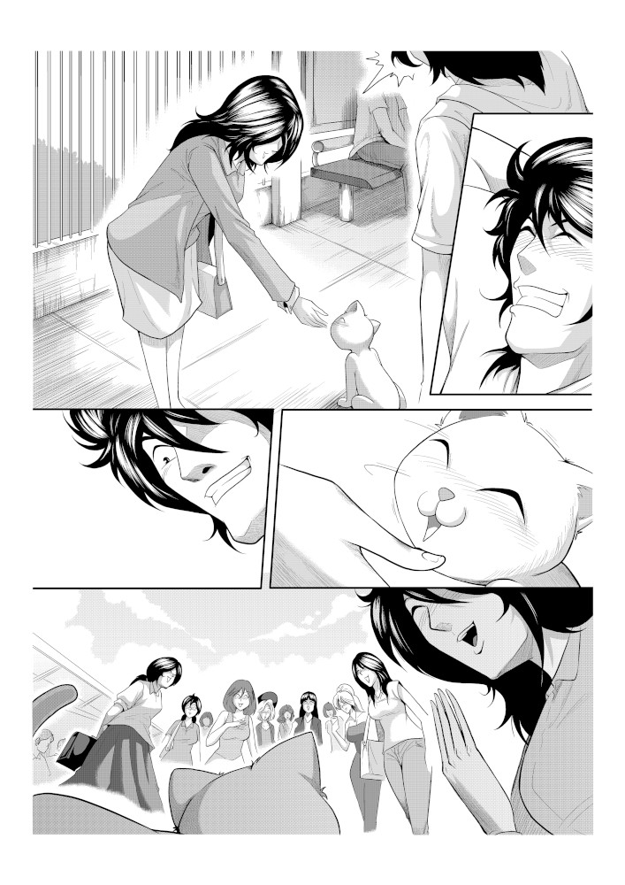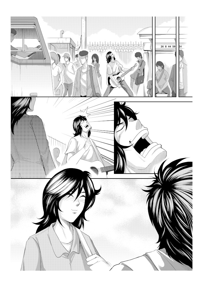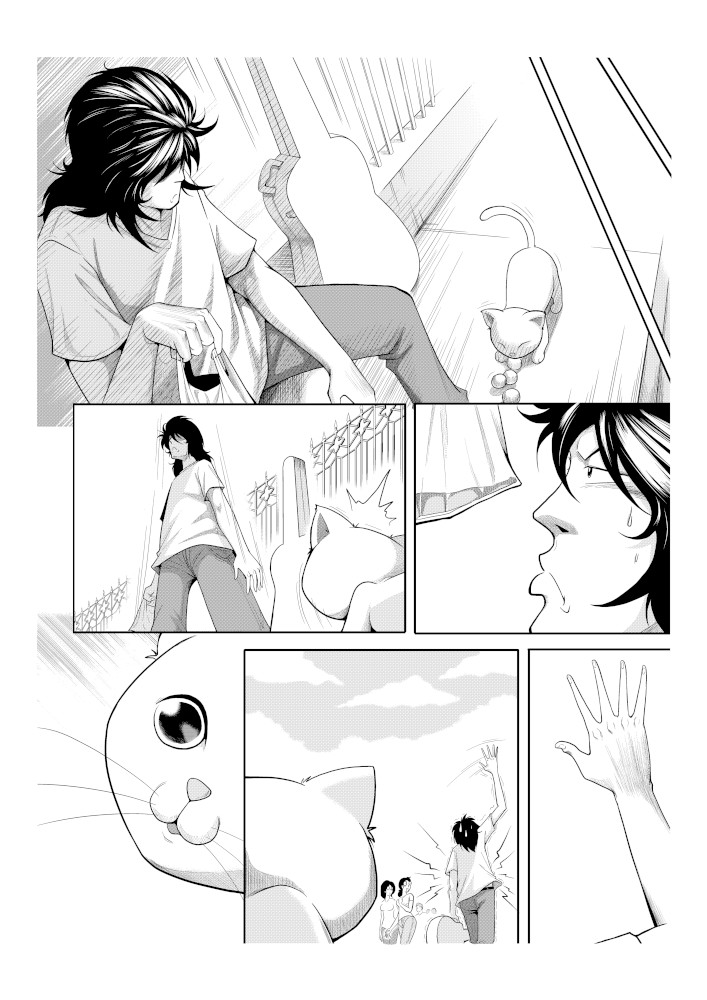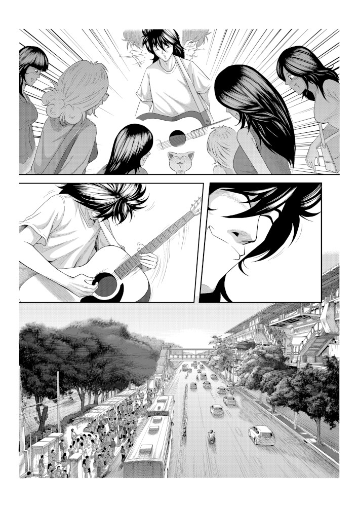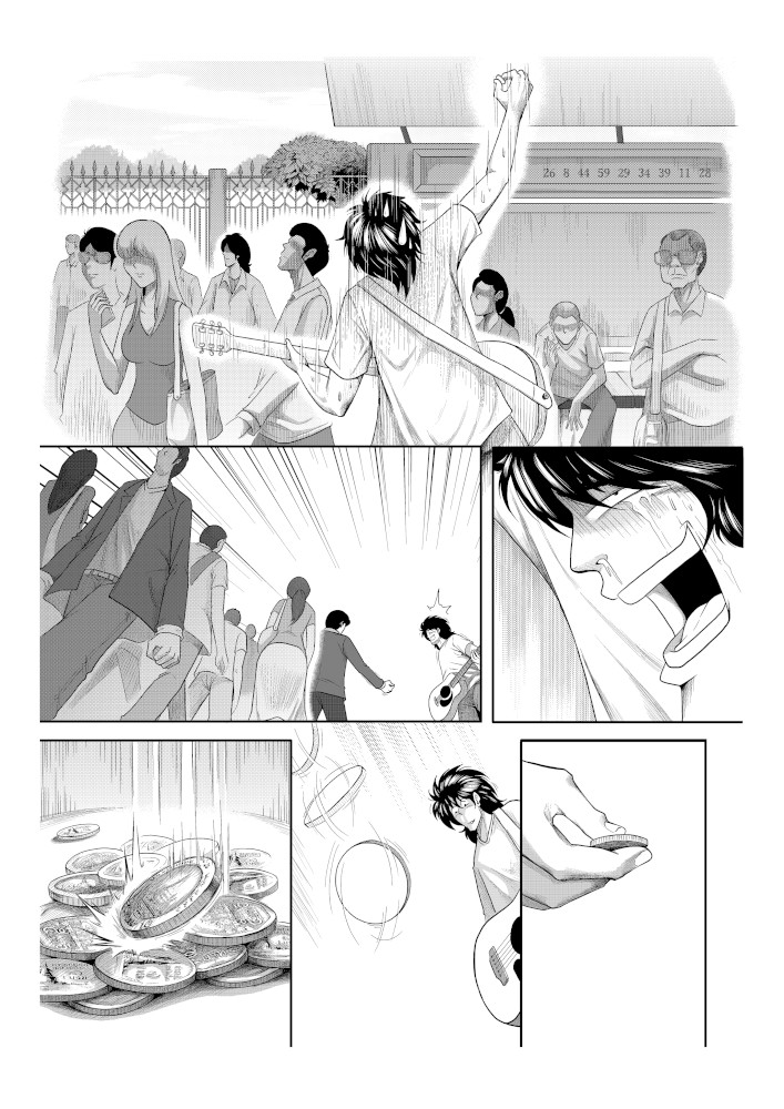 | “A street musician performs his score to entertain the passersby in exchange for a few coins, because only playing music is his happiness. Imprinted deep inside his heart is the hope that, someday, someone will be interested in and understand his songs. Alas, who would appreciate a street musician such as himself? This realization leaves him alienated and isolated. But with either a mere coincidence or a blessing from the God of rock music, a kitten comes to his place. He begins with a gift and doesn't ask for anything in return, but what the little feline brings him is unexpectedly pleasant and meaningful. A bright new day doesn't have to wait until the sunrise, and their friendship and new lives just begin right before the sunset.” | |